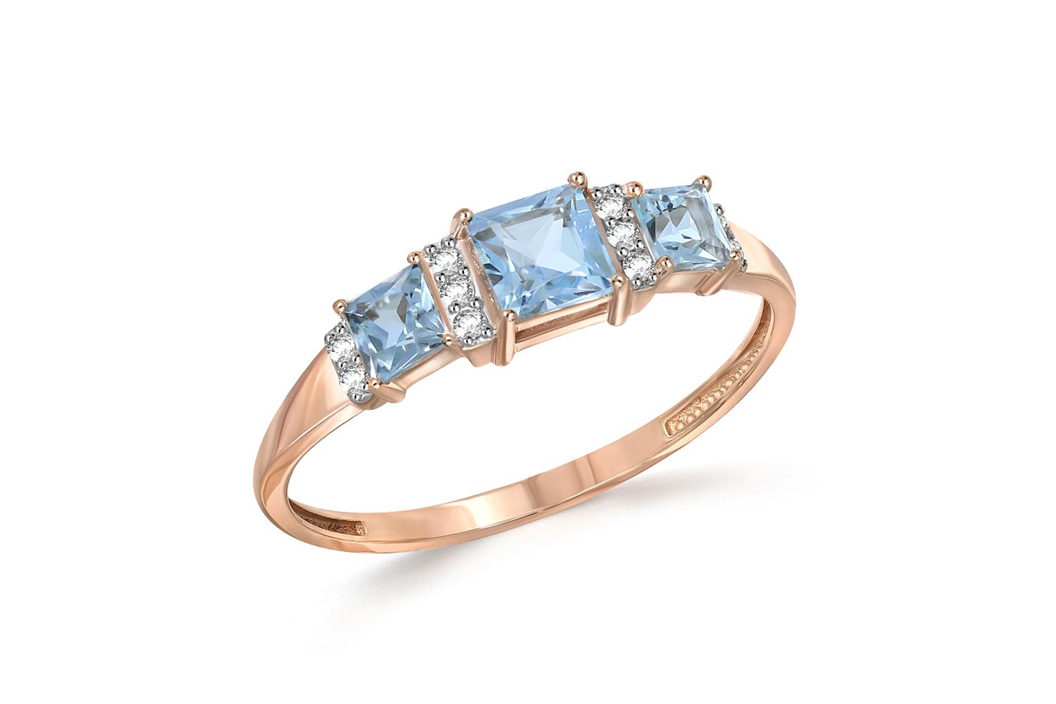 Закажите Кольцо из красного золота с 3 топазами sky и 10 фианитами с получением в Москве через курьерскую службу доставки напрямую с нашего производственного склада завода NEWGOLD!