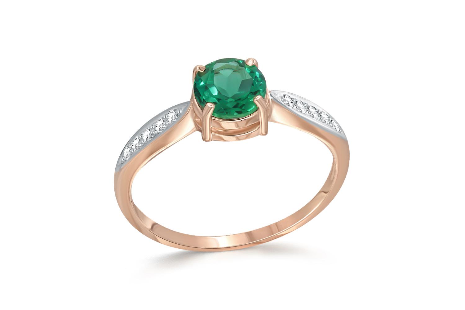 Мастера компании NEWGOLD, приложив всё свое мастерство и искусство, создали для Вас на нашем собственном производстве Кольцо из красного золота с изумрудом и 10 фианитами.