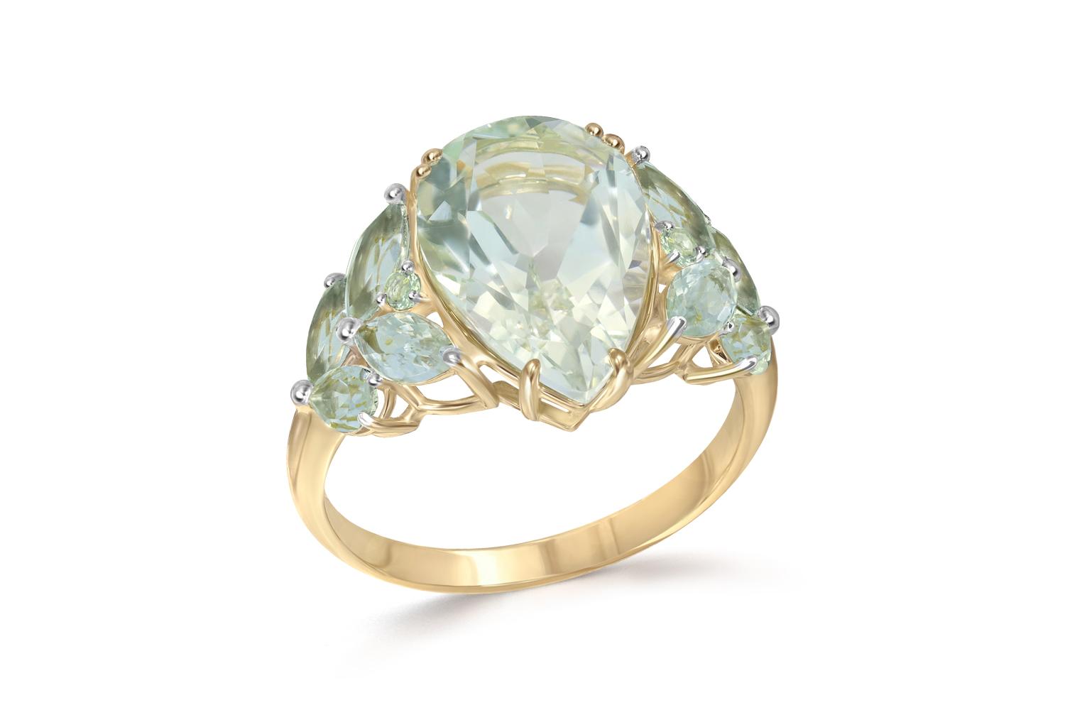 Аметист зеленый натуральный, количество 1 шт., огранка груша, размер 15ˣ10 ; Аметист зеленый натуральный, количество 4 шт., огранка маркиз, размер 6ˣ3 ; Аметист зеленый натуральный, количество 4 шт., огранка груша, размер 5ˣ3 ; Лейкосапфир натуральный,
