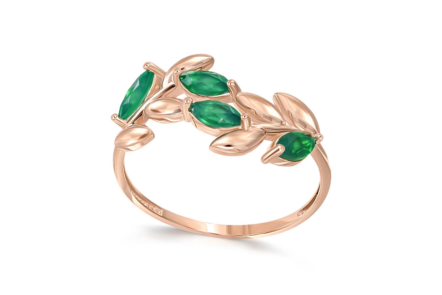 Мастера компании NEWGOLD, приложив всё свое мастерство и искусство, создали для Вас на нашем собственном производстве Кольцо Веточка из красного золота с 4 агатами.