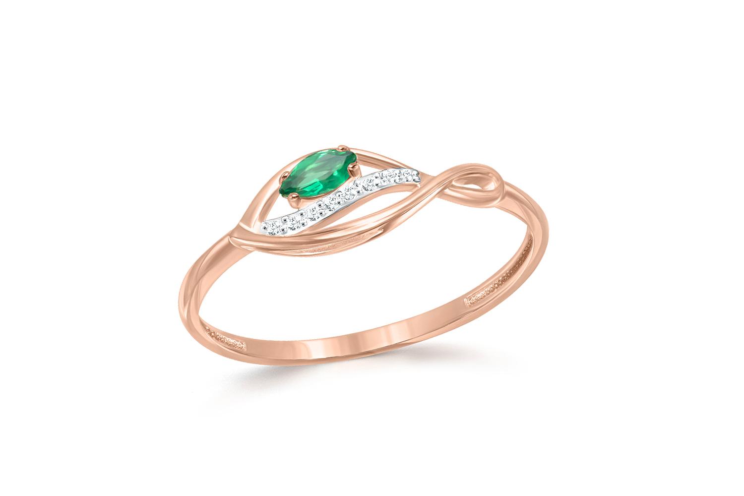 Кольцо из красного золота с изумрудом и бриллиантами. Центральным элементом композиции служит гидротермальный изумруд насыщенного зеленого оттенка в огранке маркиз Его дополняет дорожка из натуральных бриллиантов, подчеркивая благородство изумруда россыпью мельчайших сверкающих граней.