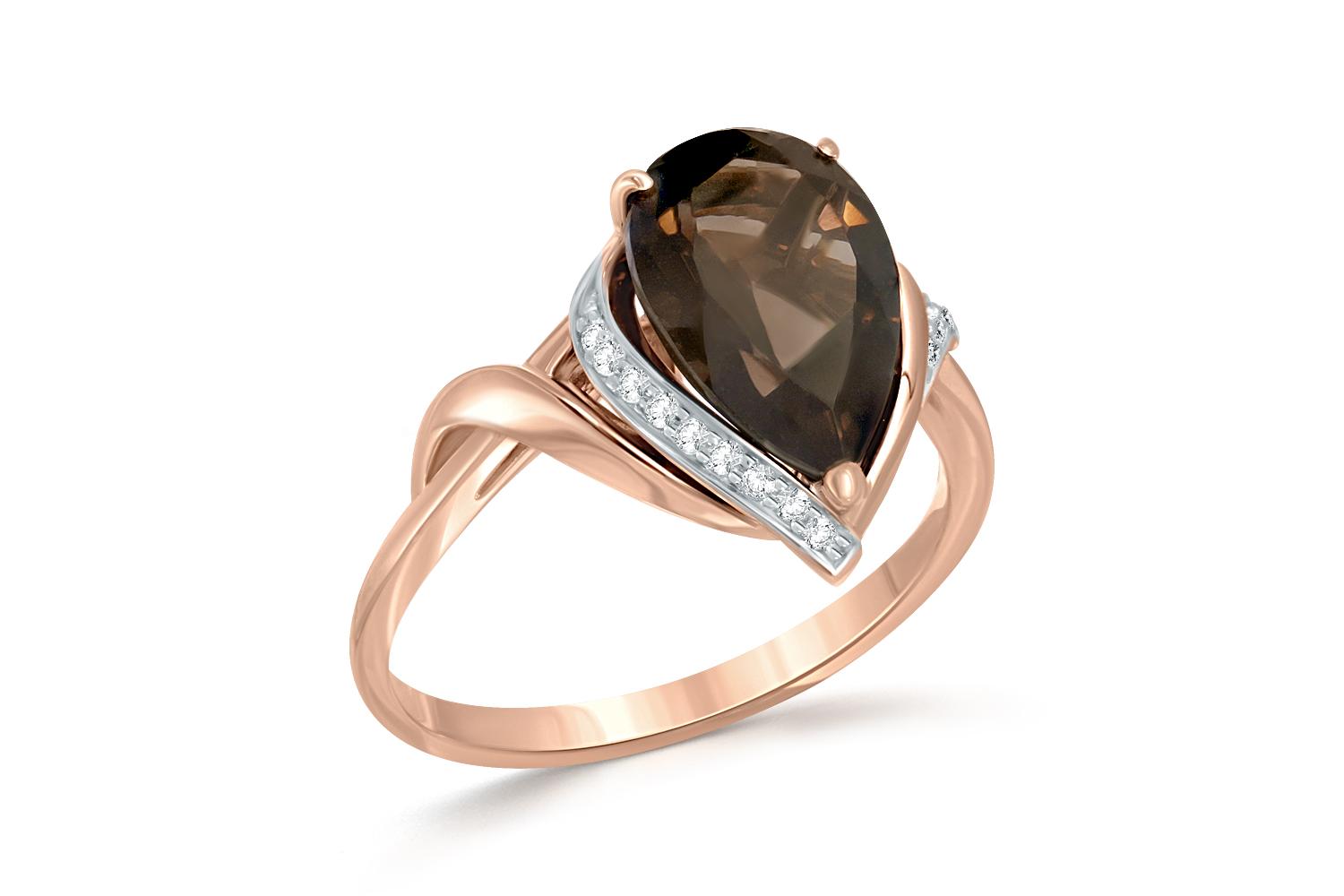 Мастера компании NEWGOLD, приложив всё свое мастерство и искусство, создали для Вас на нашем собственном производстве Кольцо из красного золота с раухтопазом и 15 фианитами.