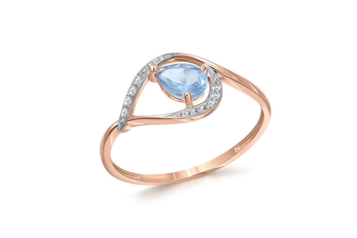 Закажите Кольцо из красного золота с топазом sky и 7 фианитами с получением в Москве через курьерскую службу доставки напрямую с нашего производственного склада завода NEWGOLD!