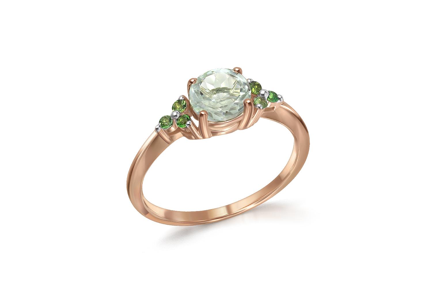 Аметист зеленый натуральный, количество 1 шт., огранка круг, размер 6 мм ; Фианит б/цв, количество 6 шт., огранка круг, размер 1,5 мм