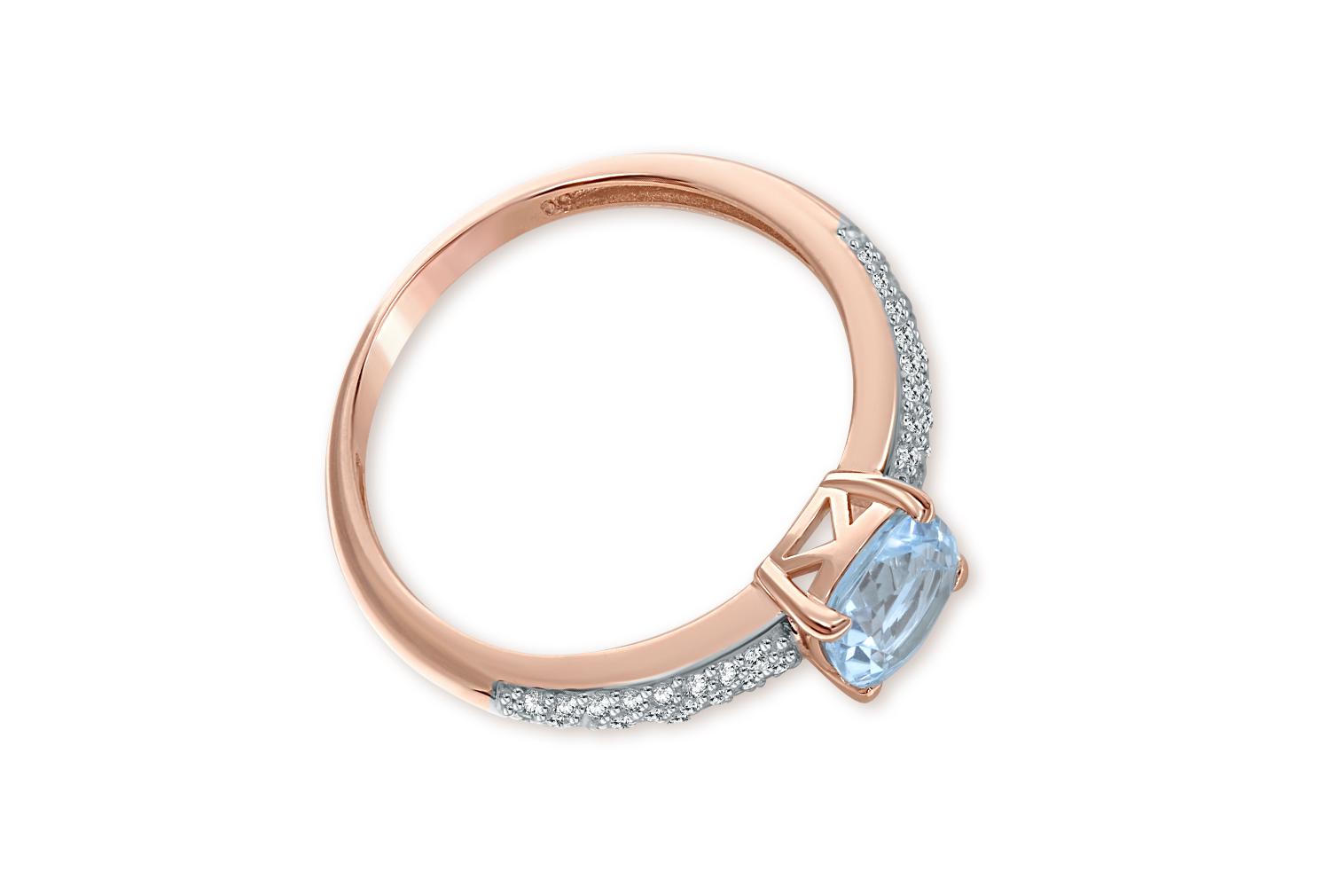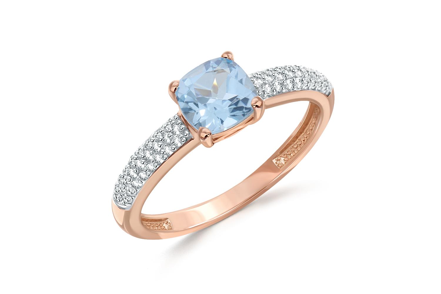 Мастера компании NEWGOLD, приложив всё свое мастерство и искусство, создали для Вас на нашем собственном производстве Кольцо из красного золота с топазом sky и 50 фианитами.