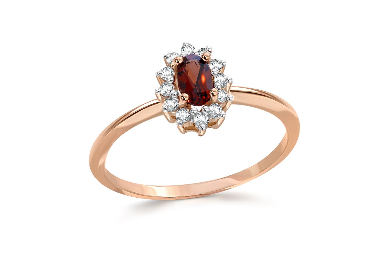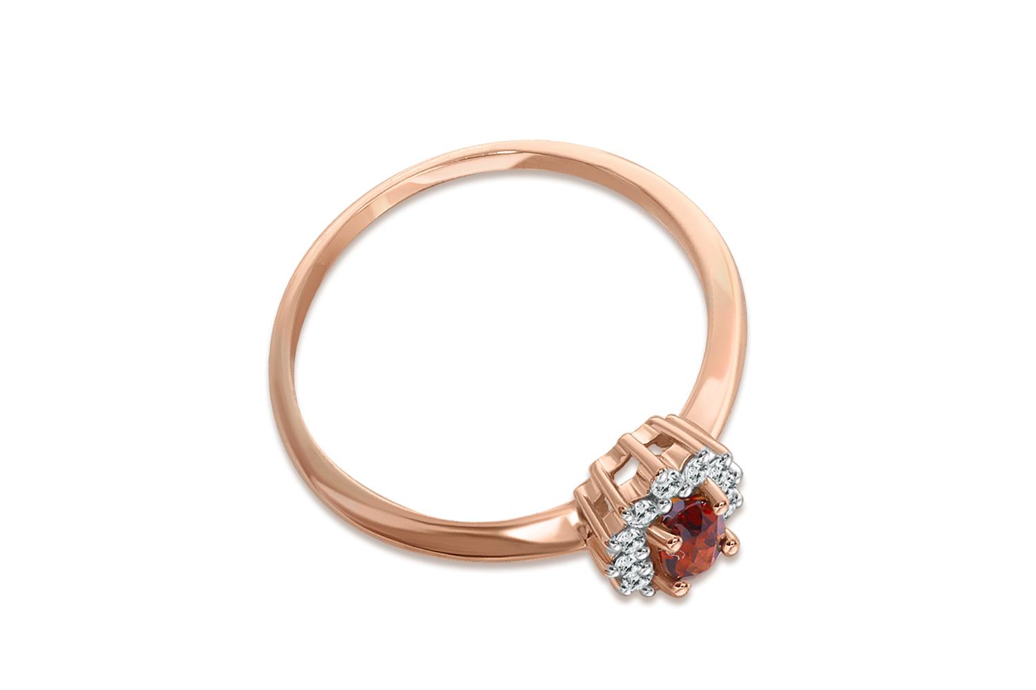 Закажите Кольцо из красного золота с гранатом и 12 фианитами с получением в Москве через курьерскую службу доставки напрямую с нашего производственного склада завода NEWGOLD!