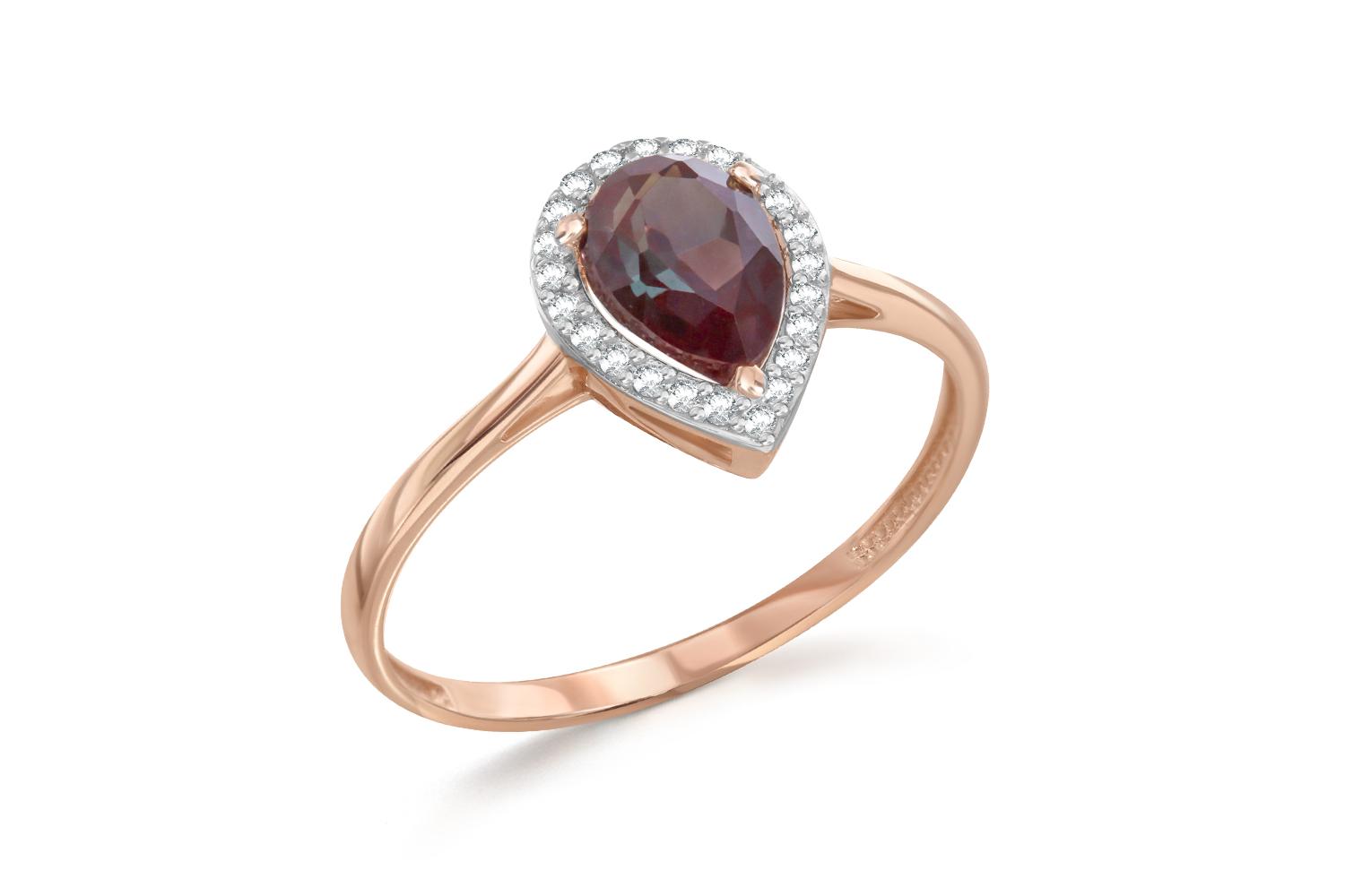 Мастера компании NEWGOLD, приложив всё свое мастерство и искусство, создали для Вас на нашем собственном производстве Кольцо из красного золота с александритом и 23 фианитами.