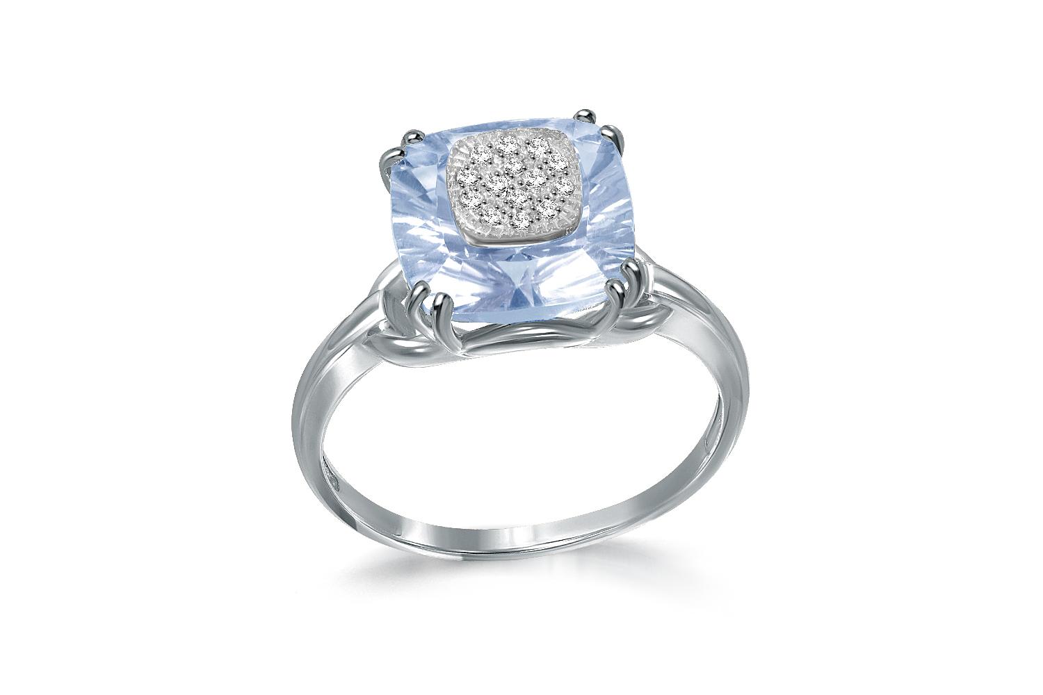Мастера компании NEWGOLD, приложив всё свое мастерство и искусство, создали для Вас на нашем собственном производстве Кольцо из белого золота с топазом sky и 14 бриллиантами.