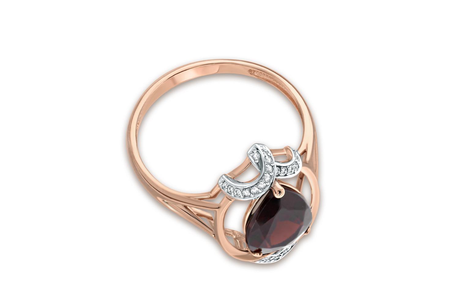 Мастера компании NEWGOLD, приложив всё свое мастерство и искусство, создали для Вас на нашем собственном производстве Кольцо из красного золота с гранатом и 23 фианитами.