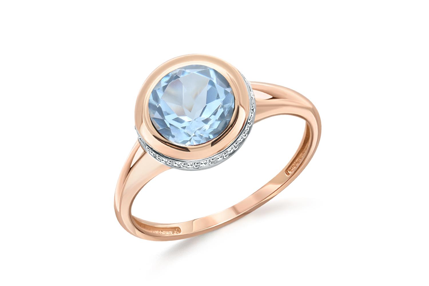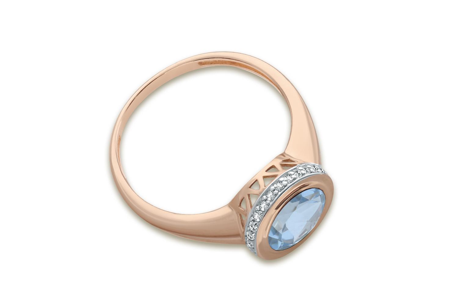 Мастера компании NEWGOLD, приложив всё свое мастерство и искусство, создали для Вас на нашем собственном производстве Кольцо из красного золота с топазом sky и 26 фианитами.