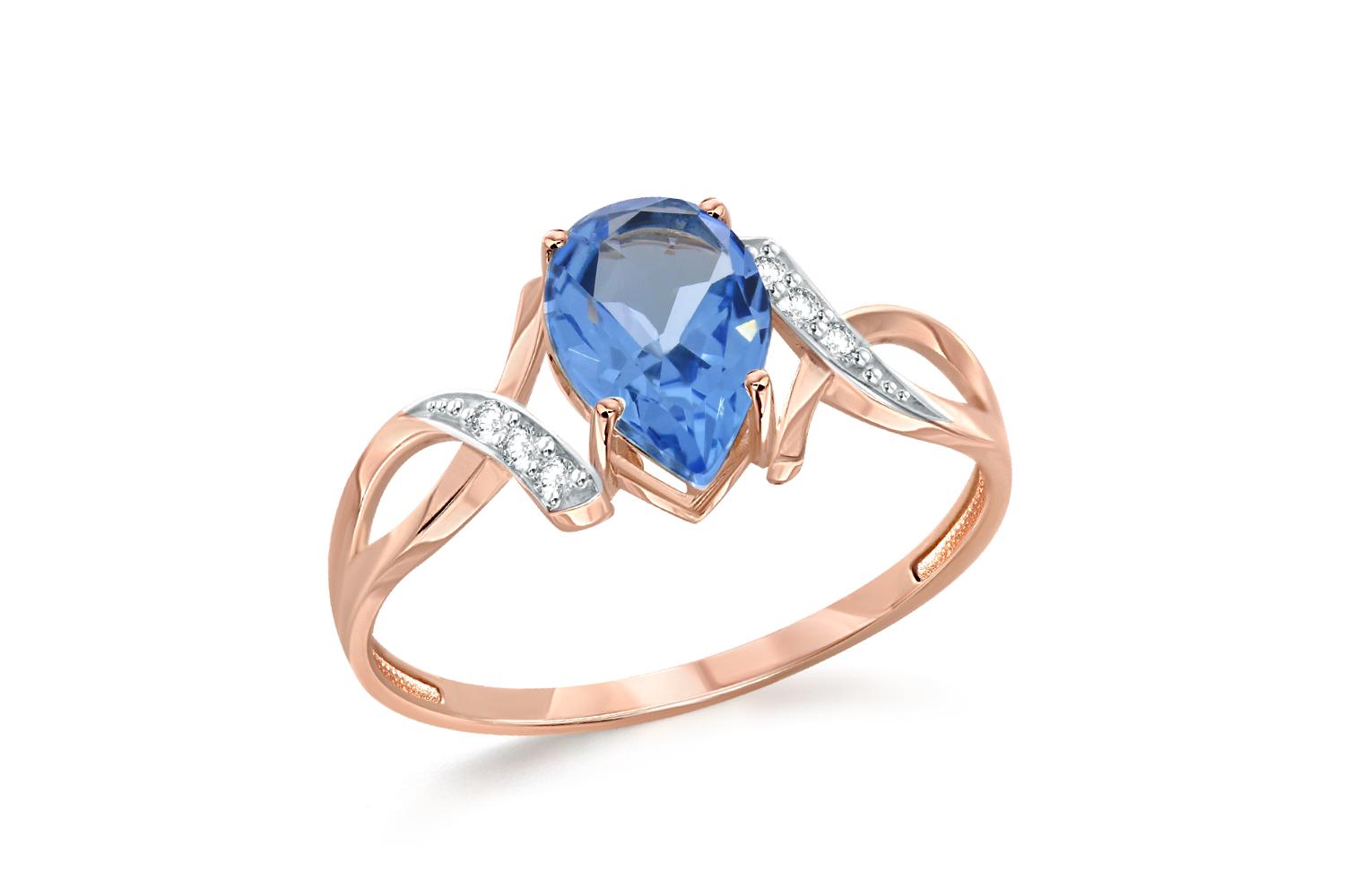 Закажите Кольцо из красного золота с топазом swiss и 6 фианитами с получением в Москве через курьерскую службу доставки напрямую с нашего производственного склада завода NEWGOLD!