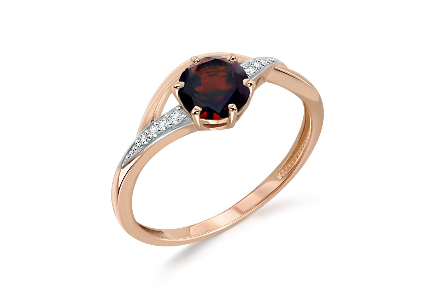 Мастера компании NEWGOLD, приложив всё свое мастерство и искусство, создали для Вас на нашем собственном производстве Кольцо из красного золота с гранатом и 7 фианитами.