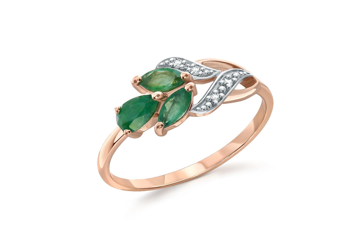 Закажите Кольцо Цветок из красного золота с 3 изумрудами и 4 бриллиантами с получением в Москве через курьерскую службу доставки напрямую с нашего производственного склада завода NEWGOLD!