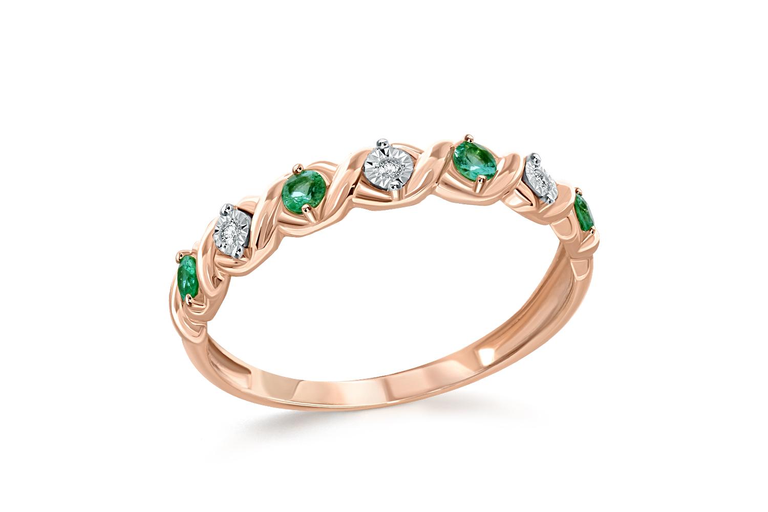 Мастера компании NEWGOLD, приложив всё свое мастерство и искусство, создали для Вас на нашем собственном производстве Кольцо Дорожка из красного золота с 4 изумрудами и 3 бриллиантами.