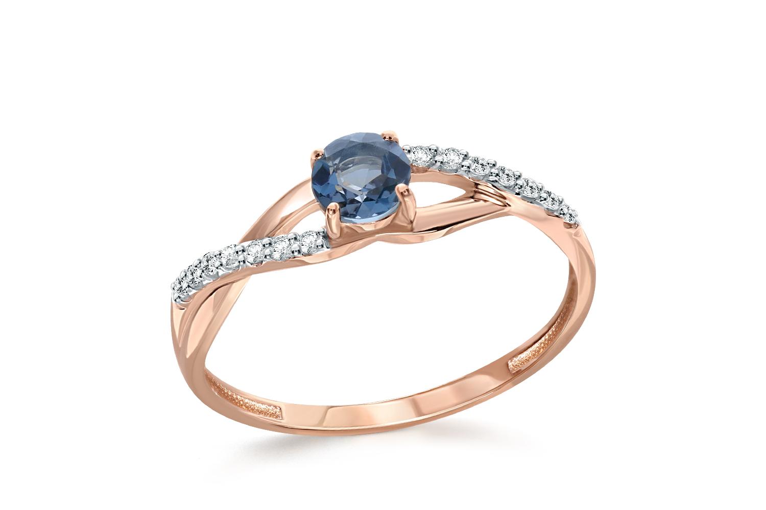 Мастера компании NEWGOLD, приложив всё свое мастерство и искусство, создали для Вас на нашем собственном производстве Кольцо из красного золота с топазом лондон и 14 фианитами.