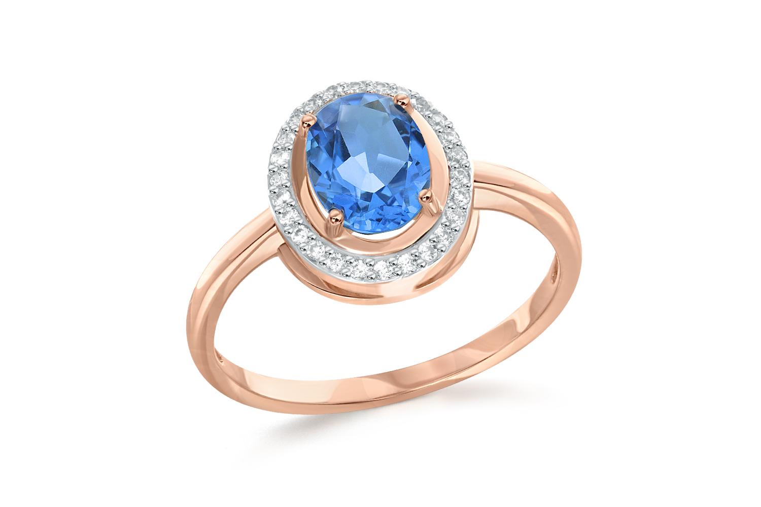 Закажите Кольцо из красного золота с топазом swiss и 26 фианитами с получением в Москве через курьерскую службу доставки напрямую с нашего производственного склада завода NEWGOLD!