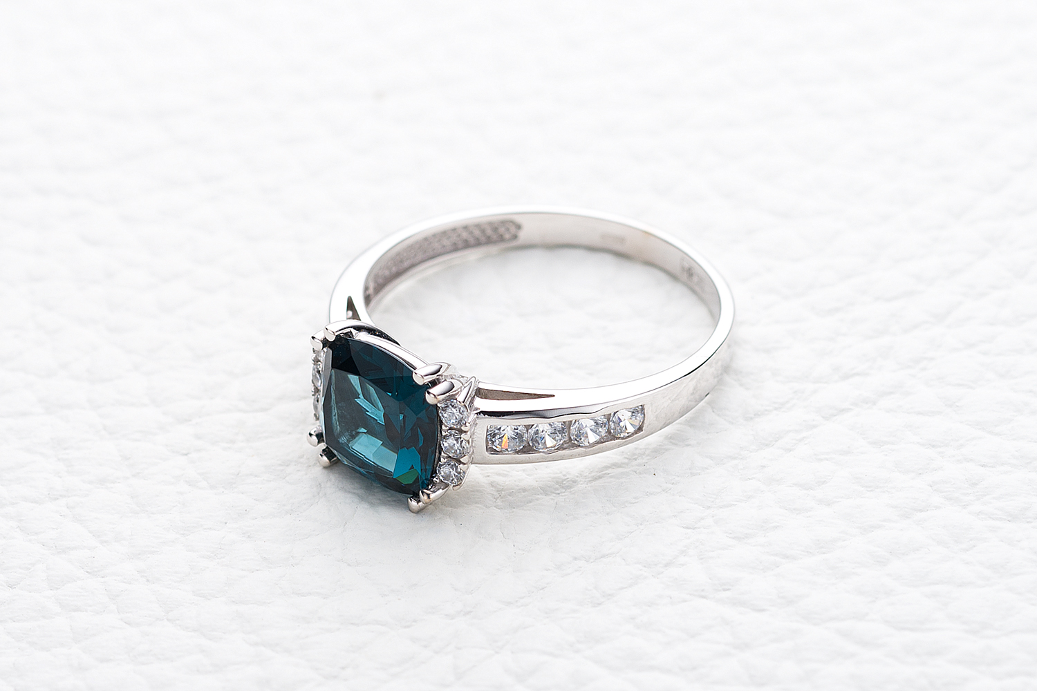 Мастера компании NEWGOLD, приложив всё свое мастерство и искусство, создали для Вас на нашем собственном производстве Кольцо из белого золота с ситаллом и 14 фианитами.