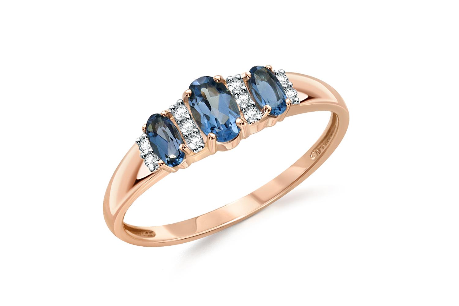 Мастера компании NEWGOLD, приложив всё свое мастерство и искусство, создали для Вас на нашем собственном производстве Кольцо из красного золота с 3 топазами лондон и 10 фианитами.