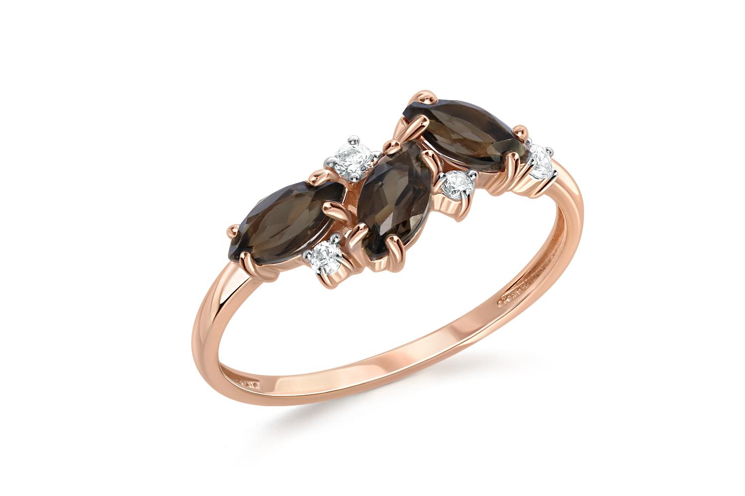 Мастера компании NEWGOLD, приложив всё свое мастерство и искусство, создали для Вас на нашем собственном производстве Кольцо из красного золота с 3 раухтопазами и 4 фианитами.