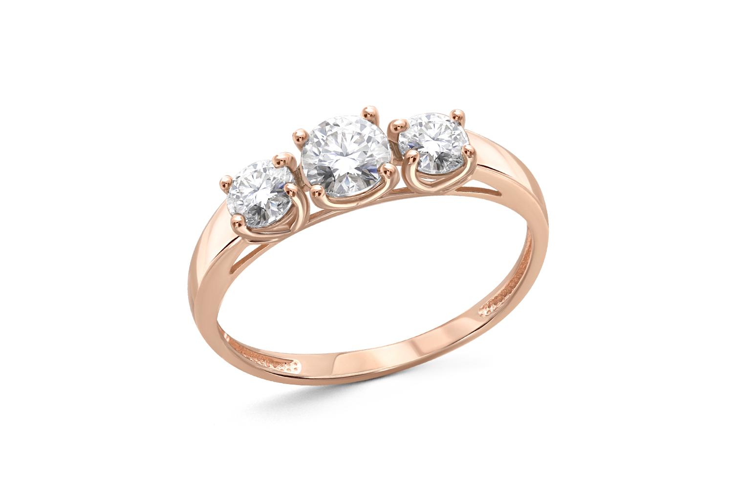 Закажите Кольцо из красного золота с 3 муассанитами с получением в Москве через курьерскую службу доставки напрямую с нашего производственного склада завода NEWGOLD!