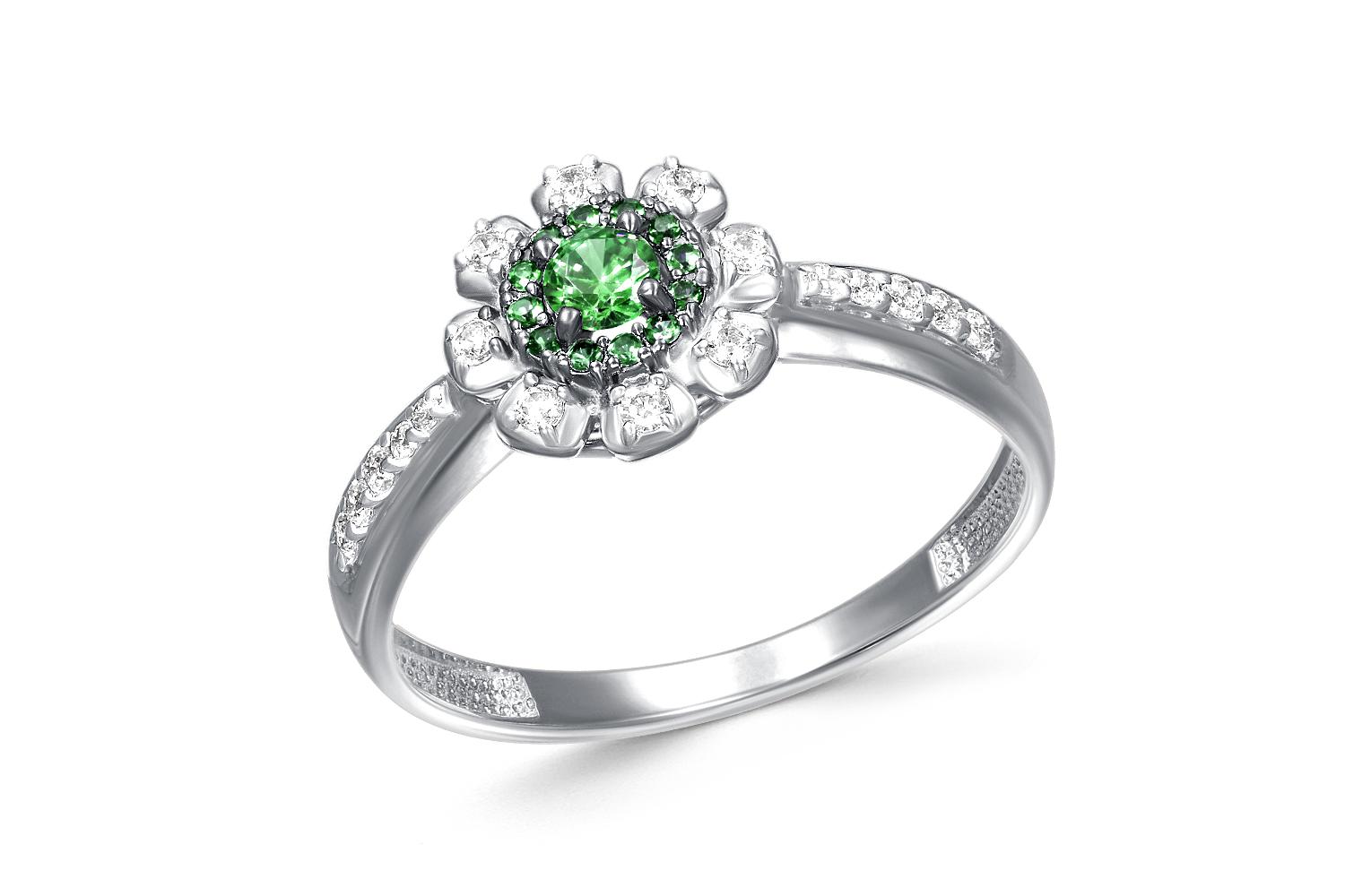 Мастера компании NEWGOLD, приложив всё свое мастерство и искусство, создали для Вас на нашем собственном производстве Кольцо Цветок из белого золота с 13 изумрудами и 18 бриллиантами.
