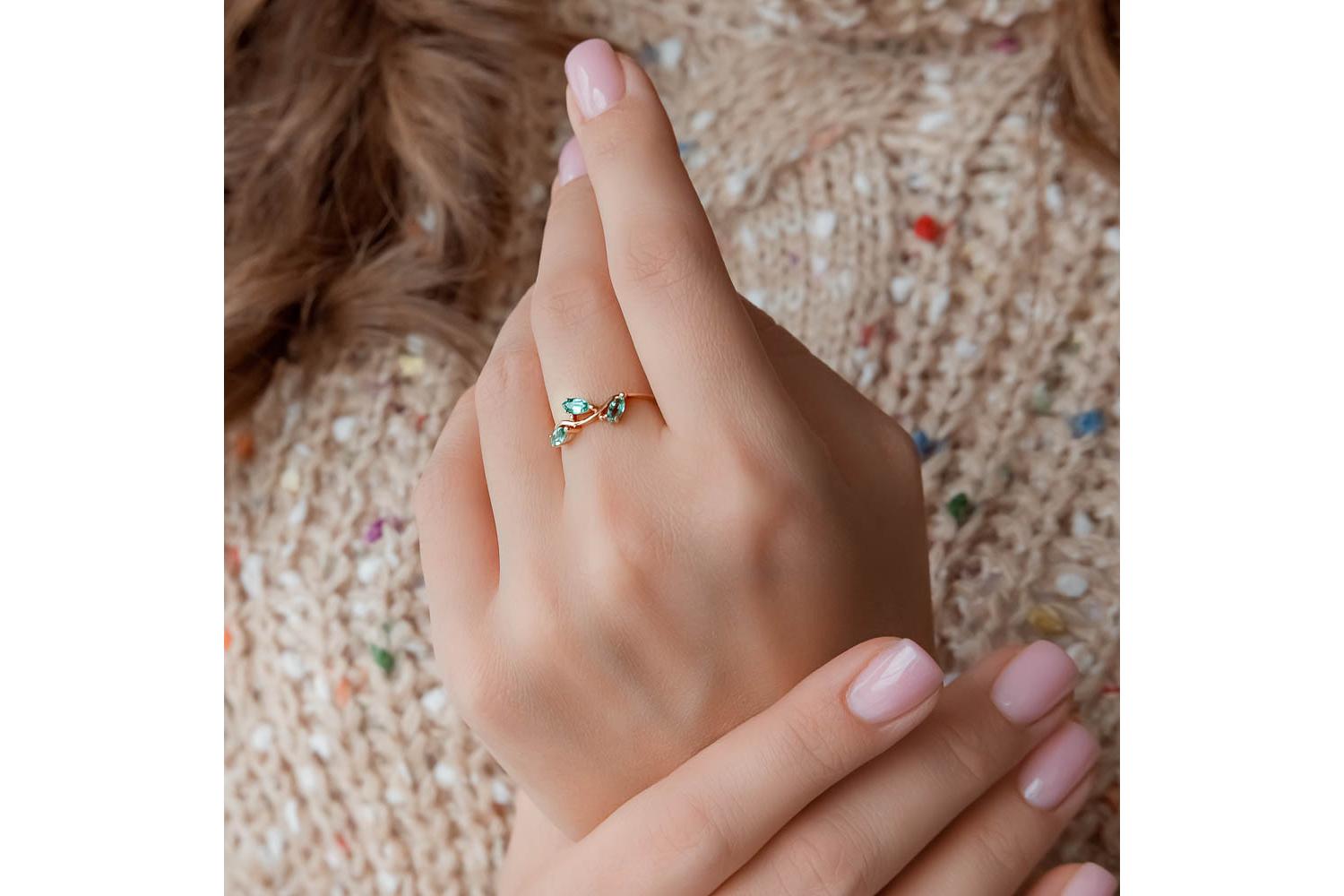 Мастера компании NEWGOLD, приложив всё свое мастерство и искусство, создали для Вас на нашем собственном производстве Кольцо из красного золота с 3 изумрудами.