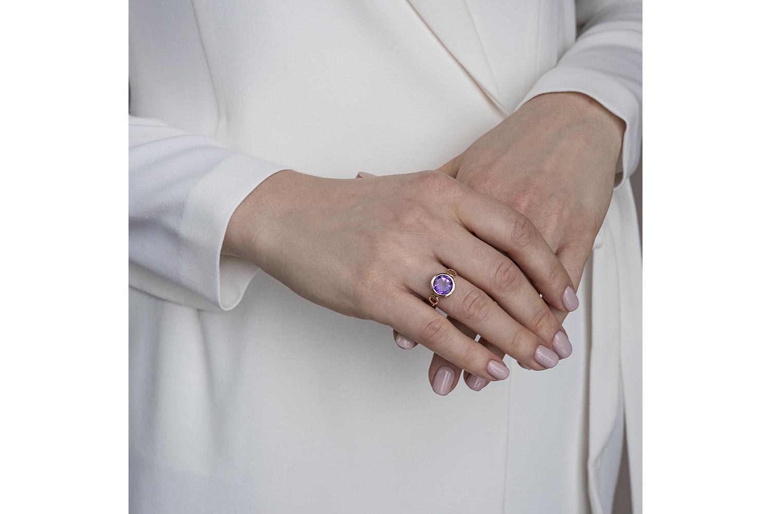 Мастера компании NEWGOLD, приложив всё свое мастерство и искусство, создали для Вас на нашем собственном производстве Кольцо из красного золота с аметистом.