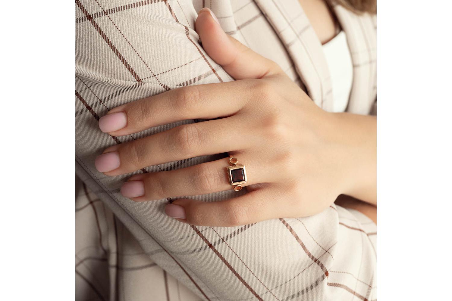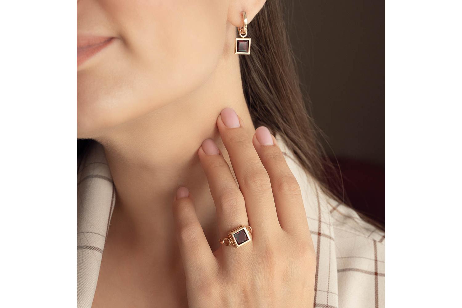 Закажите Кольцо из красного золота с гранатом с получением в Москве через курьерскую службу доставки напрямую с нашего производственного склада завода NEWGOLD!