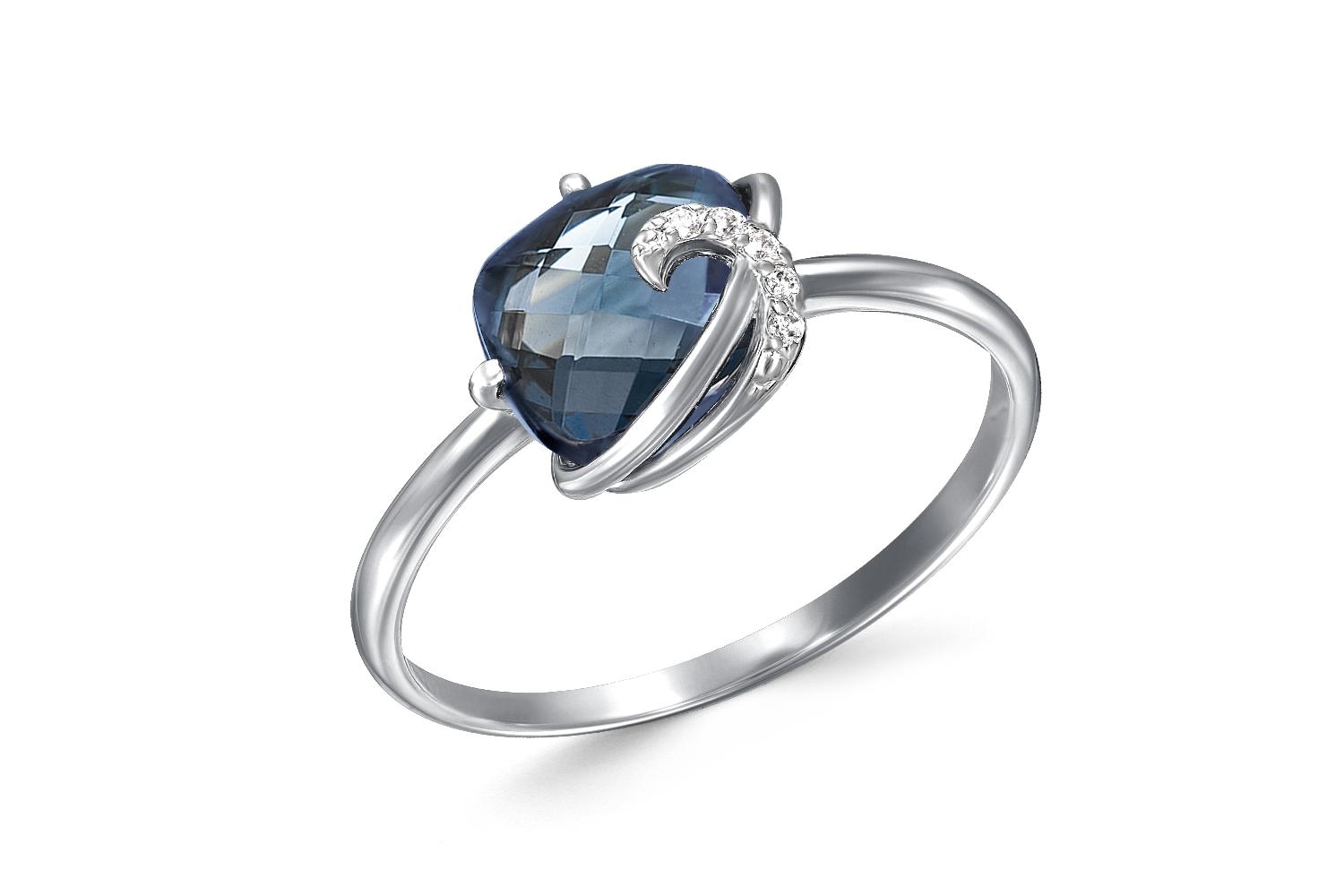 Мастера компании NEWGOLD, приложив всё свое мастерство и искусство, создали для Вас на нашем собственном производстве Кольцо из белого золота с топазом лондон и 5 фианитами.