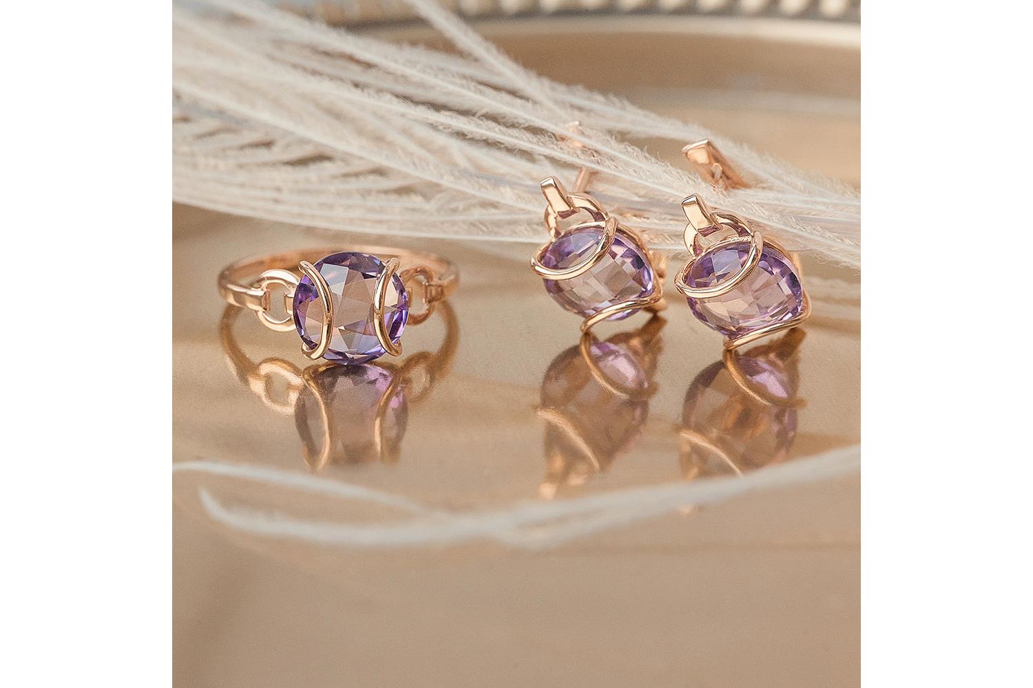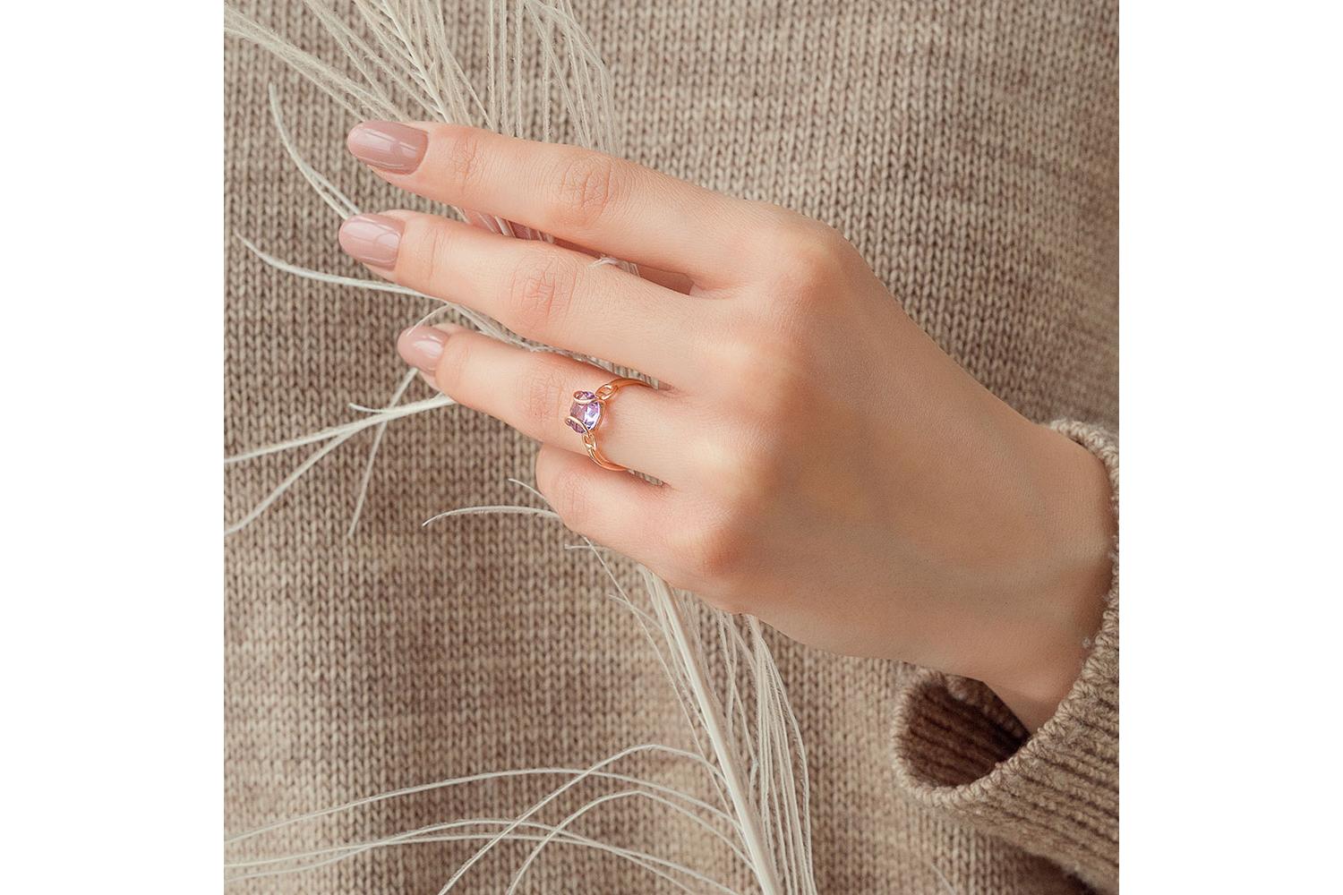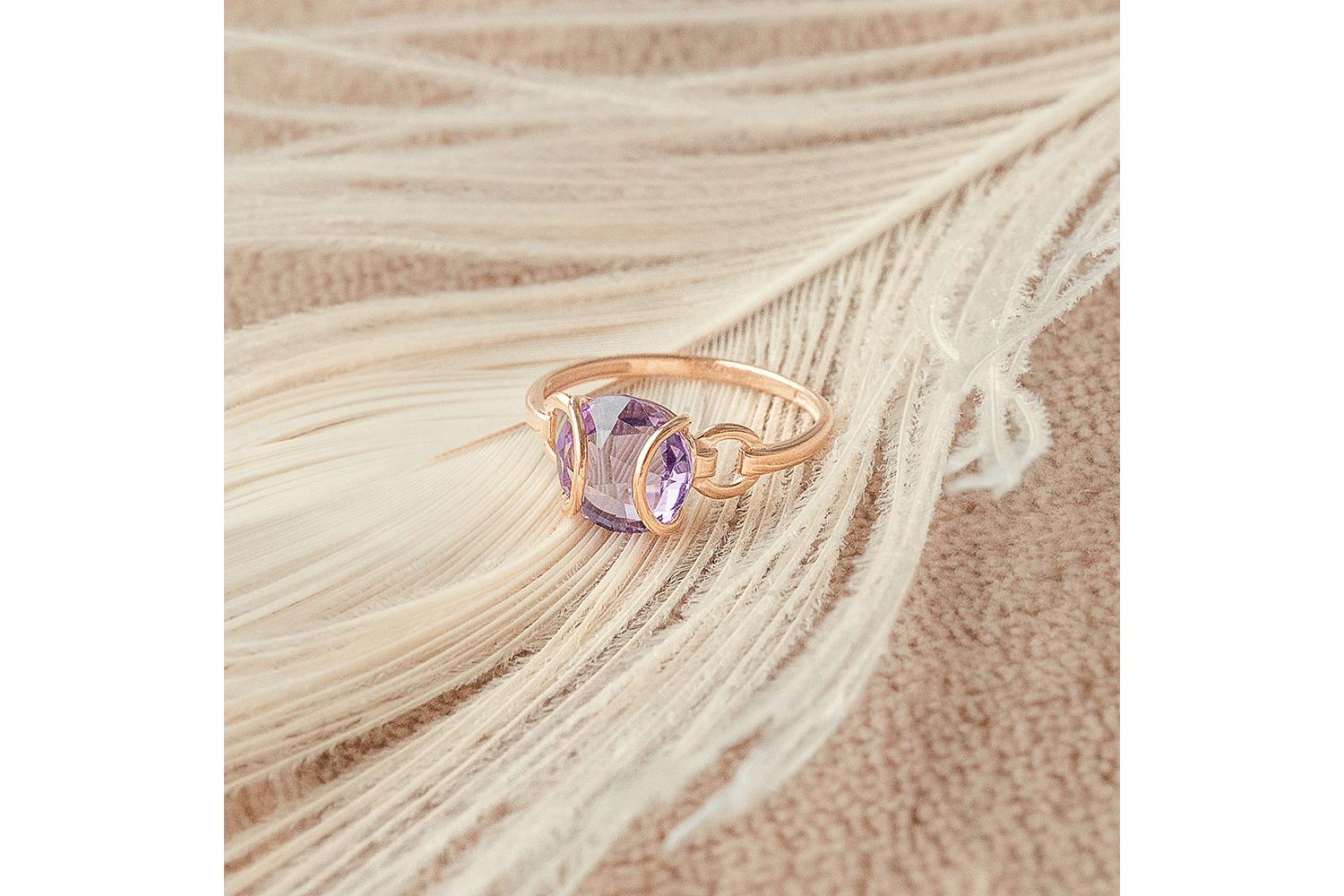 Мастера компании NEWGOLD, приложив всё свое мастерство и искусство, создали для Вас на нашем собственном производстве Кольцо из красного золота с аметистом.