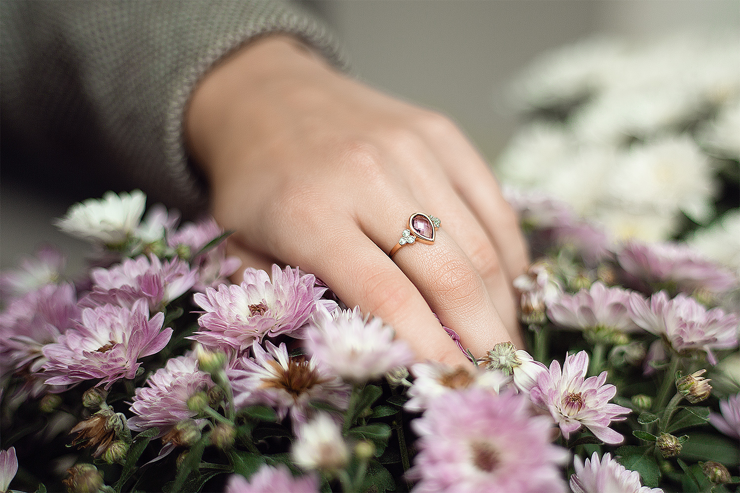 Мастера компании NEWGOLD, приложив всё свое мастерство и искусство, создали для Вас на нашем собственном производстве Кольцо из красного золота с аметистом и 6 фианитами.