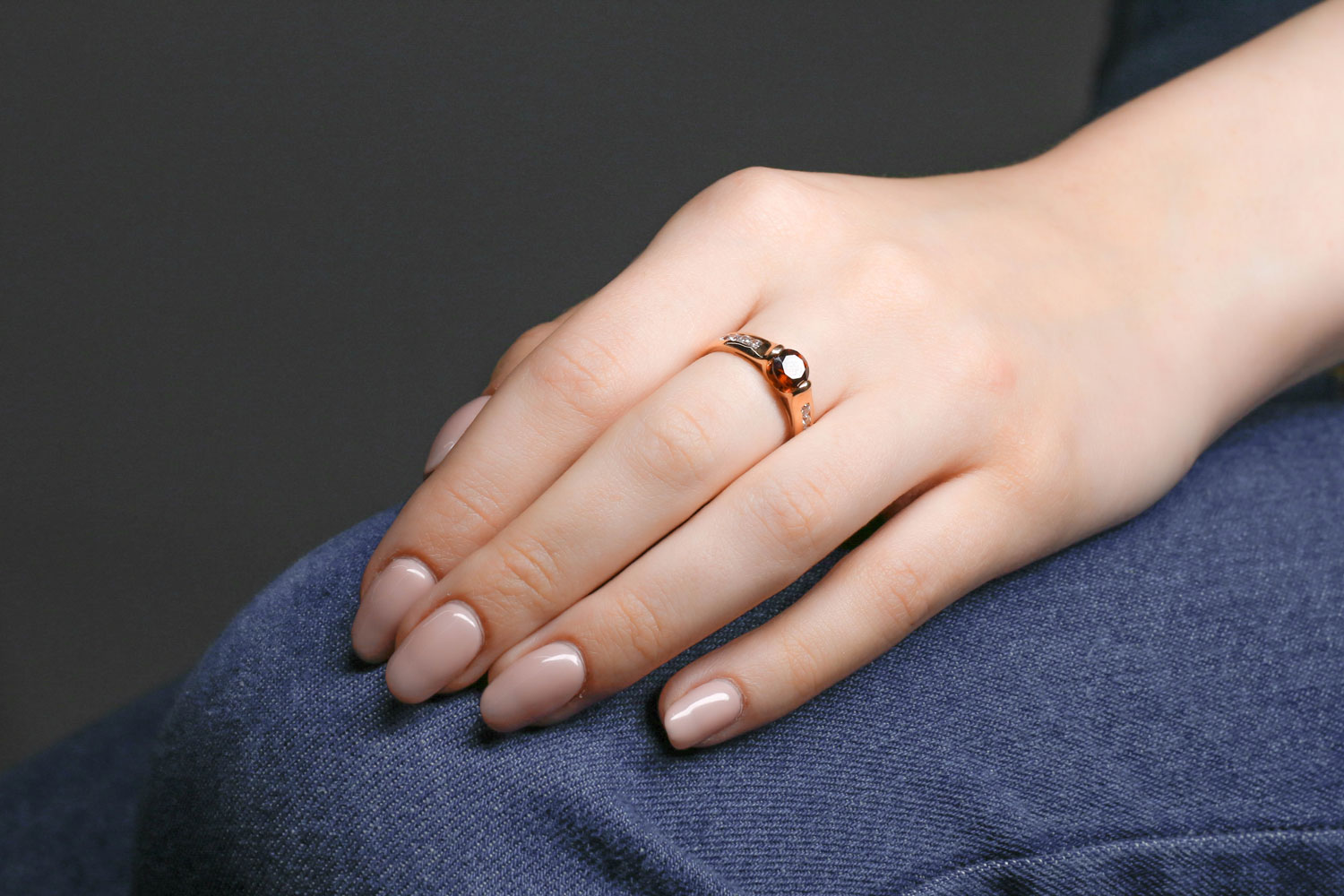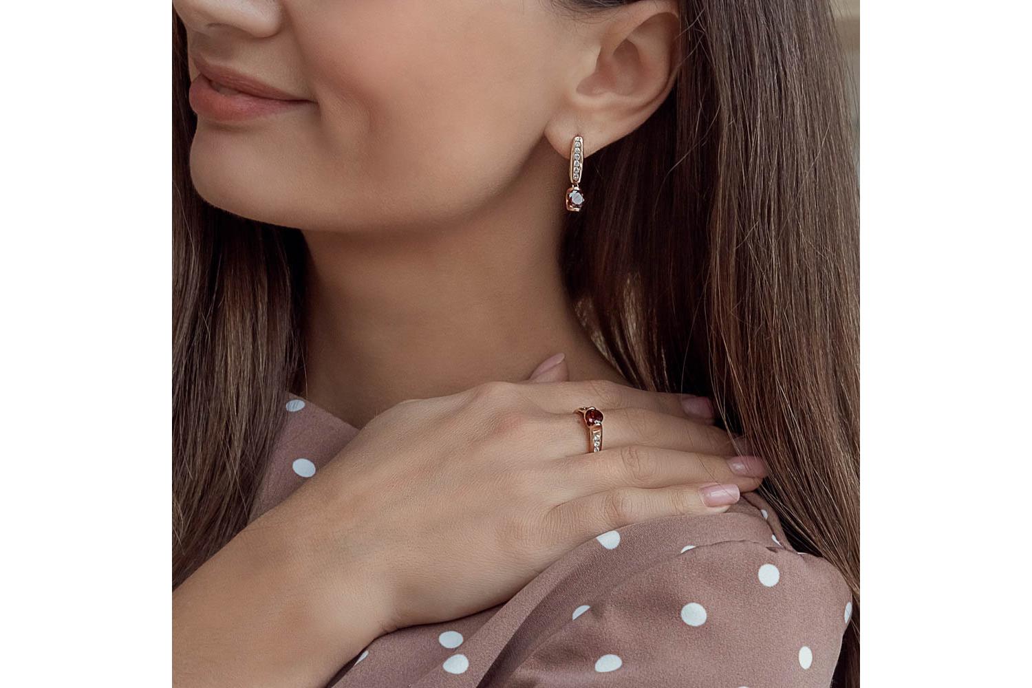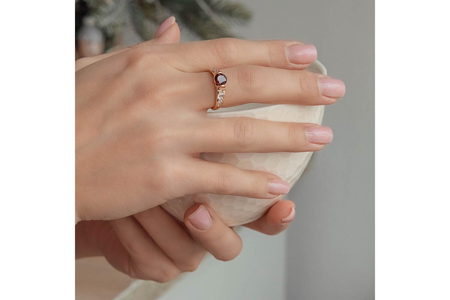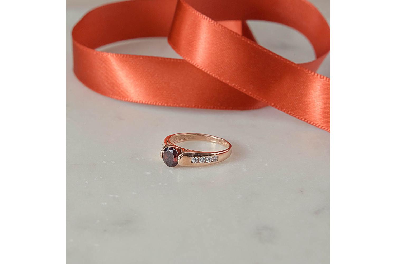 Мастера компании NEWGOLD, приложив всё свое мастерство и искусство, создали для Вас на нашем собственном производстве Кольцо из красного золота с гранатом и 8 фианитами.