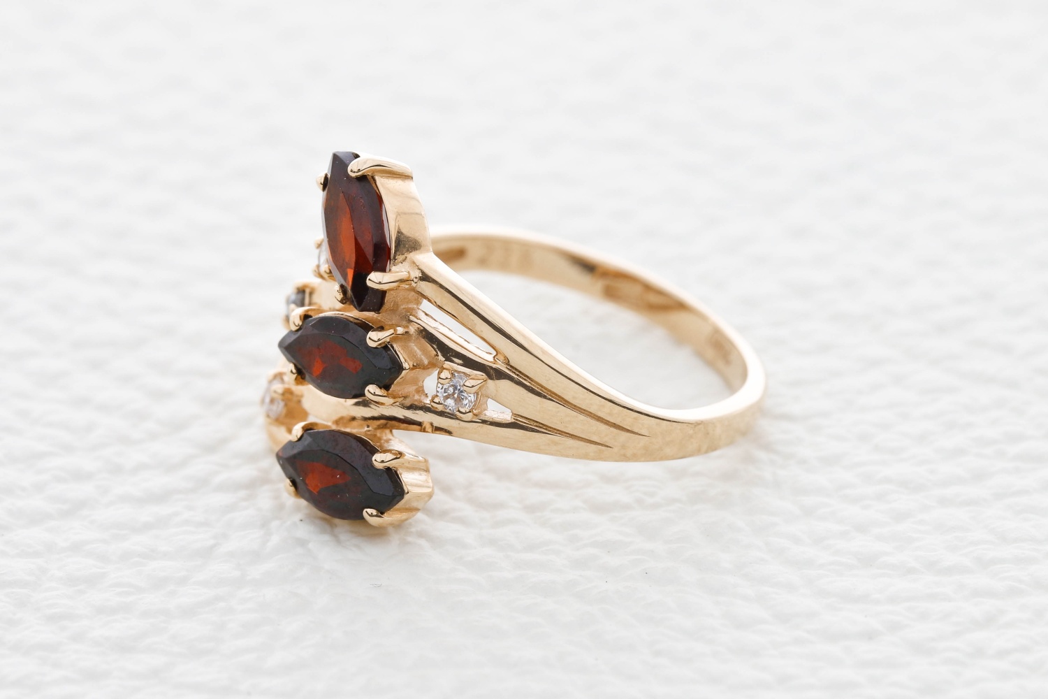 Мастера компании NEWGOLD, приложив всё свое мастерство и искусство, создали для Вас на нашем собственном производстве Кольцо из красного золота с 3 гранатами и 4 фианитами.