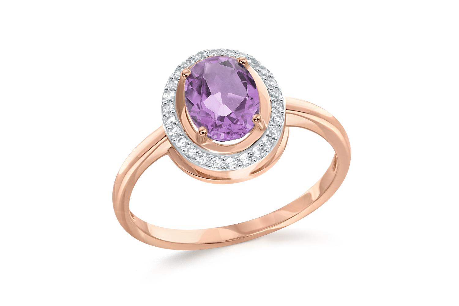 Закажите Кольцо из красного золота с аметистом и 26 фианитами с получением в Москве через курьерскую службу доставки напрямую с нашего производственного склада завода NEWGOLD!