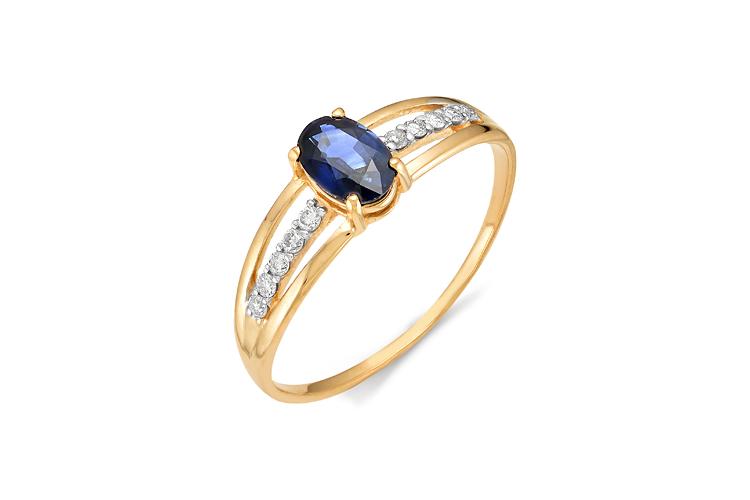 Сапфир натуральный, количество 1 шт., огранка овал, размер 6ˣ4, цвет 2, чистота 2, вес 0,703 карат. ; Бриллиант, количество 10 шт., огранка Кр-57, размер 1,25 мм, цвет 4, чистота 5, вес 0,078 карат.