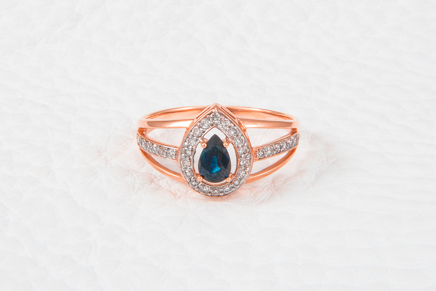 Мастера компании NEWGOLD, приложив всё свое мастерство и искусство, создали для Вас на нашем собственном производстве Кольцо из красного золота с сапфиром и 30 бриллиантами.