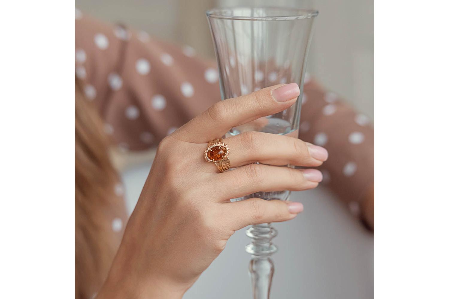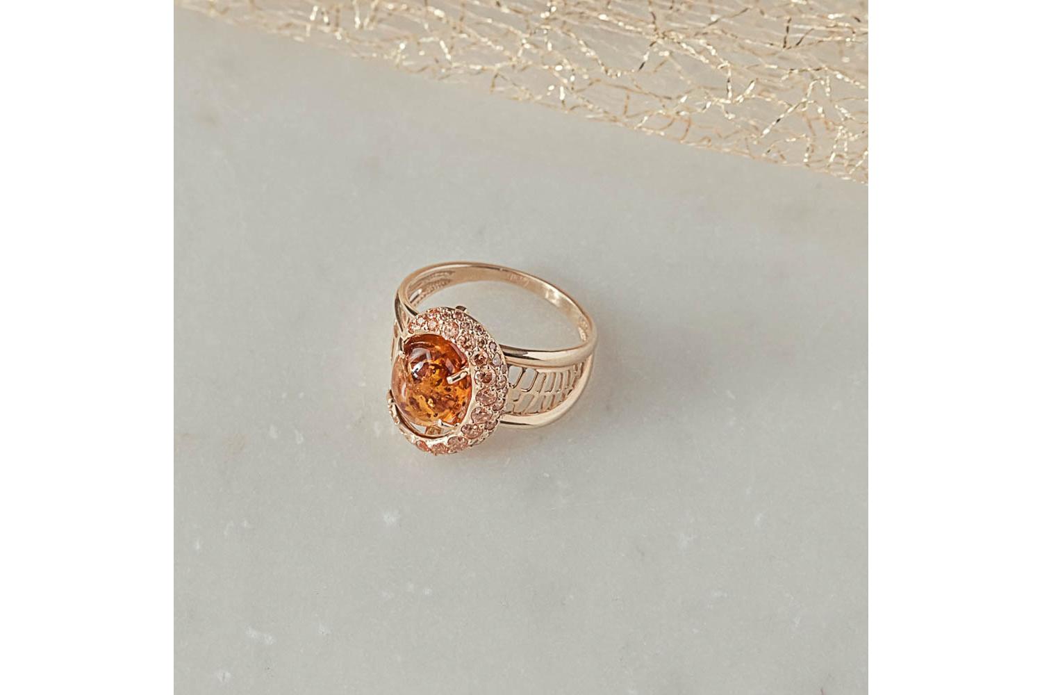 Мастера компании NEWGOLD, приложив всё свое мастерство и искусство, создали для Вас на нашем собственном производстве Кольцо из жёлтого золота с янтарём и 37 фианитами.
