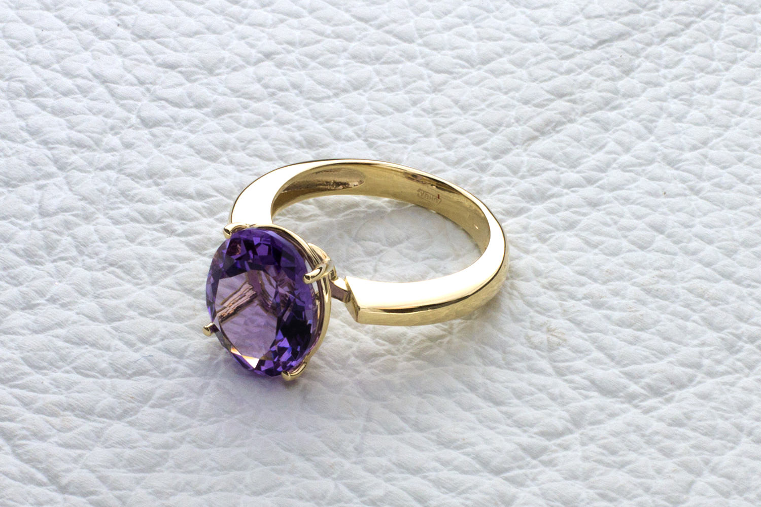 Мастера компании NEWGOLD, приложив всё свое мастерство и искусство, создали для Вас на нашем собственном производстве Кольцо из жёлтого золота с аметистом.