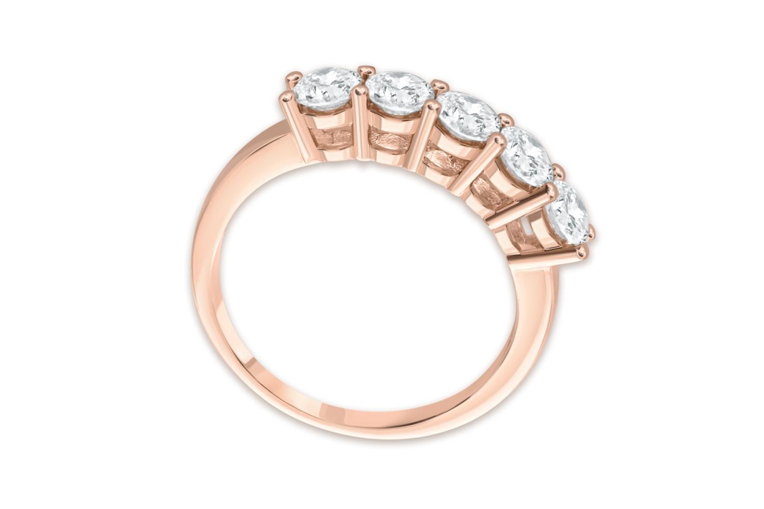 Мастера компании NEWGOLD, приложив всё свое мастерство и искусство, создали для Вас на нашем собственном производстве Кольцо Дорожка из красного золота с 5 муассанитами.