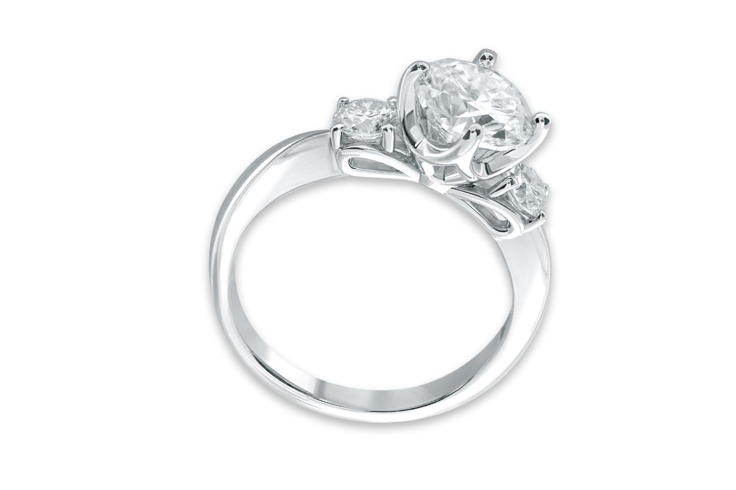Мастера компании NEWGOLD, приложив всё свое мастерство и искусство, создали для Вас на нашем собственном производстве Кольцо из белого золота с 3 муассанитами.