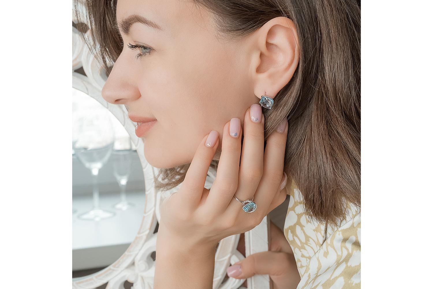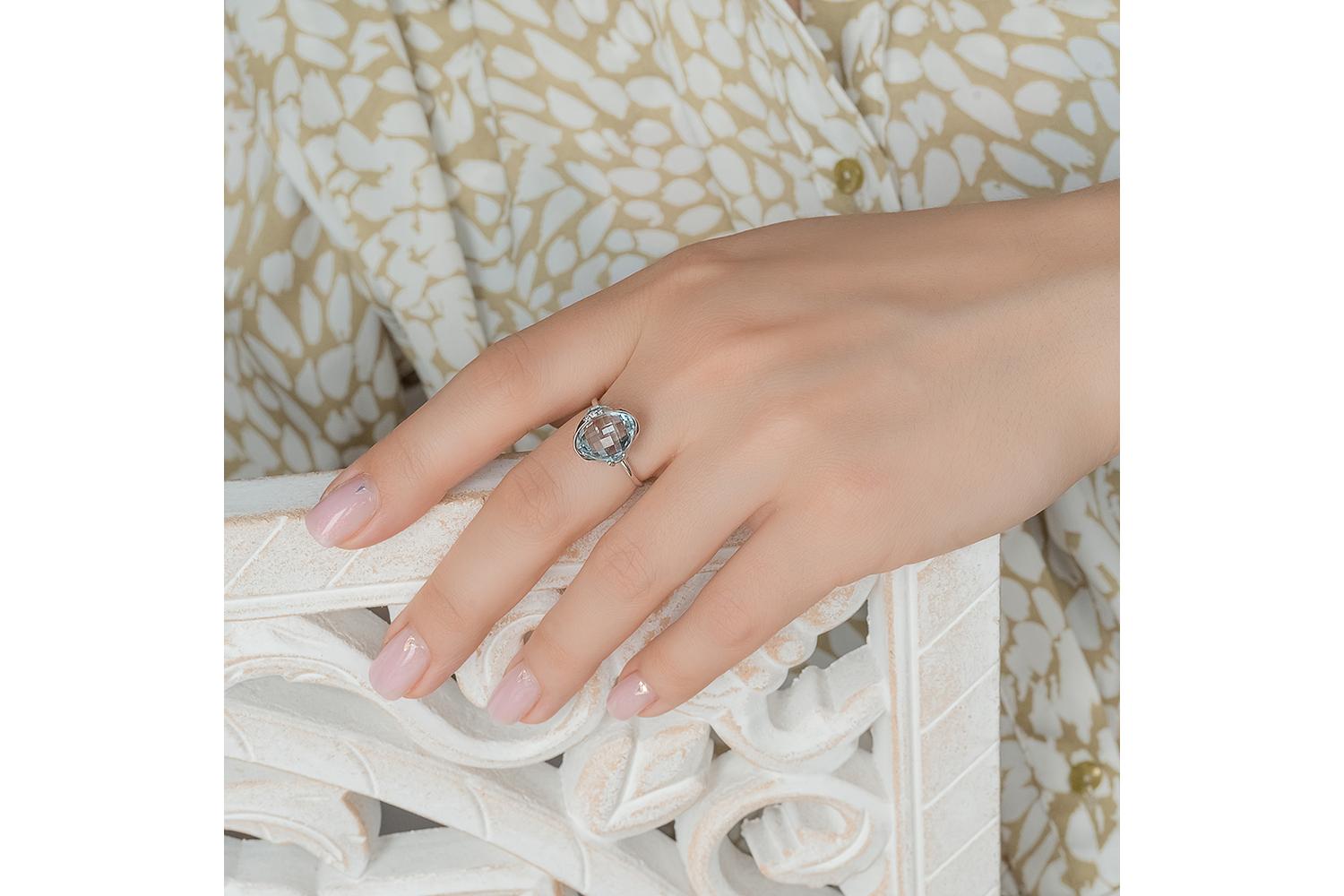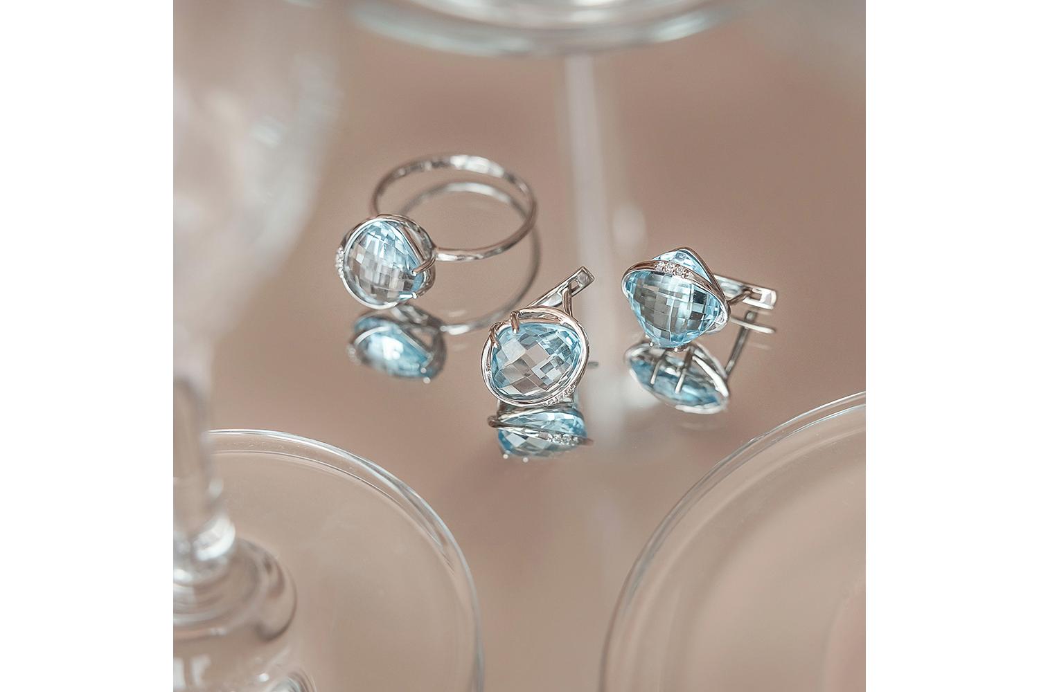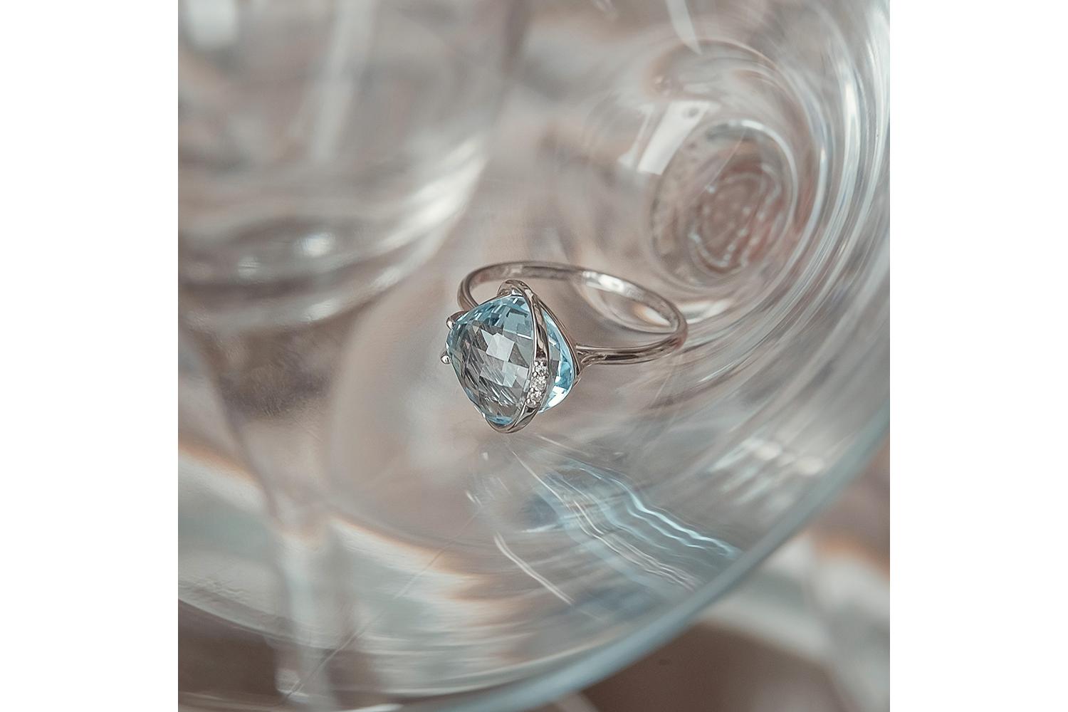 Топаз Sky натуральный, количество 1 шт., огранка антик-бриолет, размер 10ˣ10 ; Фианит б/цв, количество 1 шт., огранка круг, размер 1,25 мм ; Фианит б/цв, количество 2 шт., огранка круг, размер 1 мм