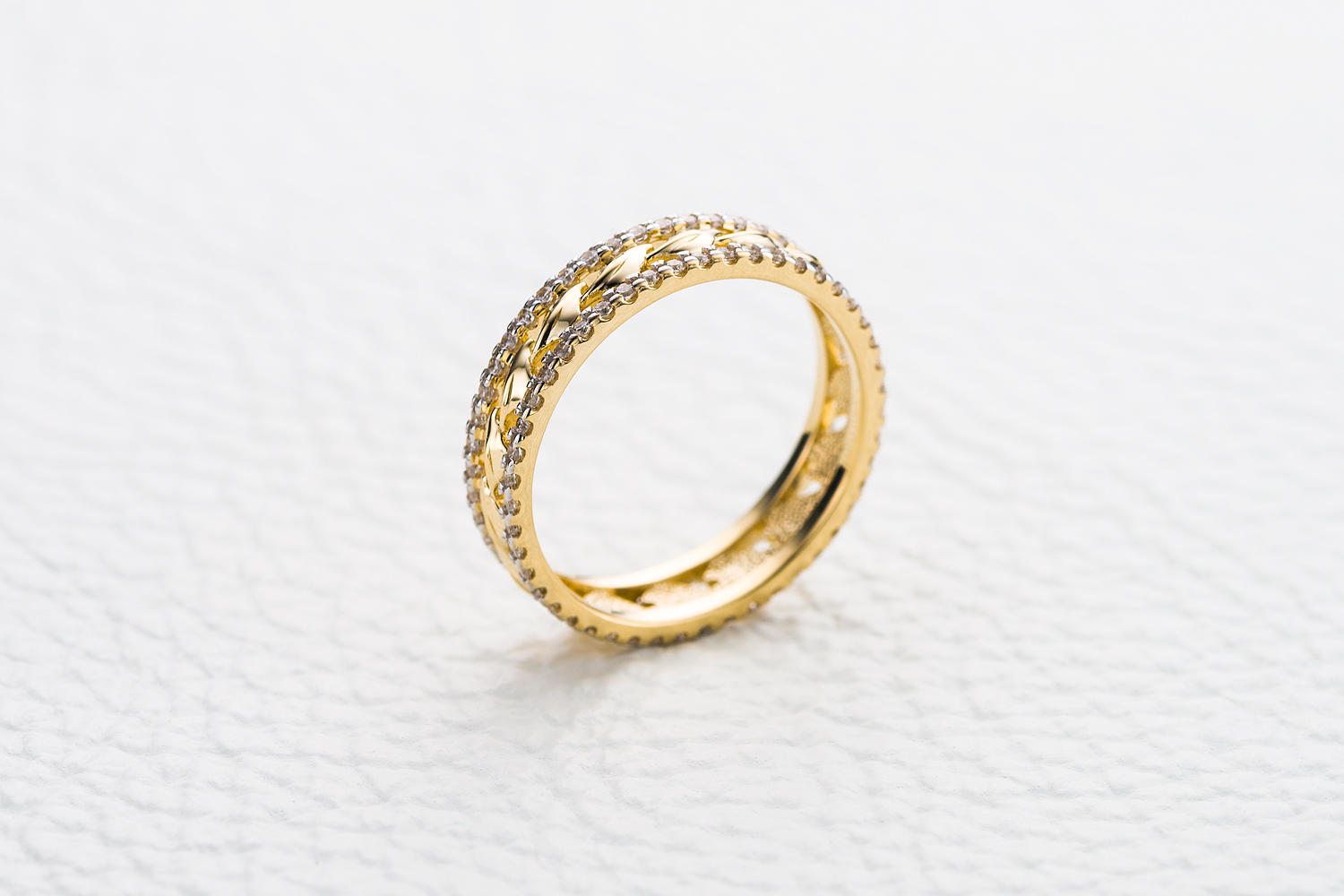Мастера компании NEWGOLD, приложив всё свое мастерство и искусство, создали для Вас на нашем собственном производстве Кольцо из жёлтого золота с 104 фианитами.