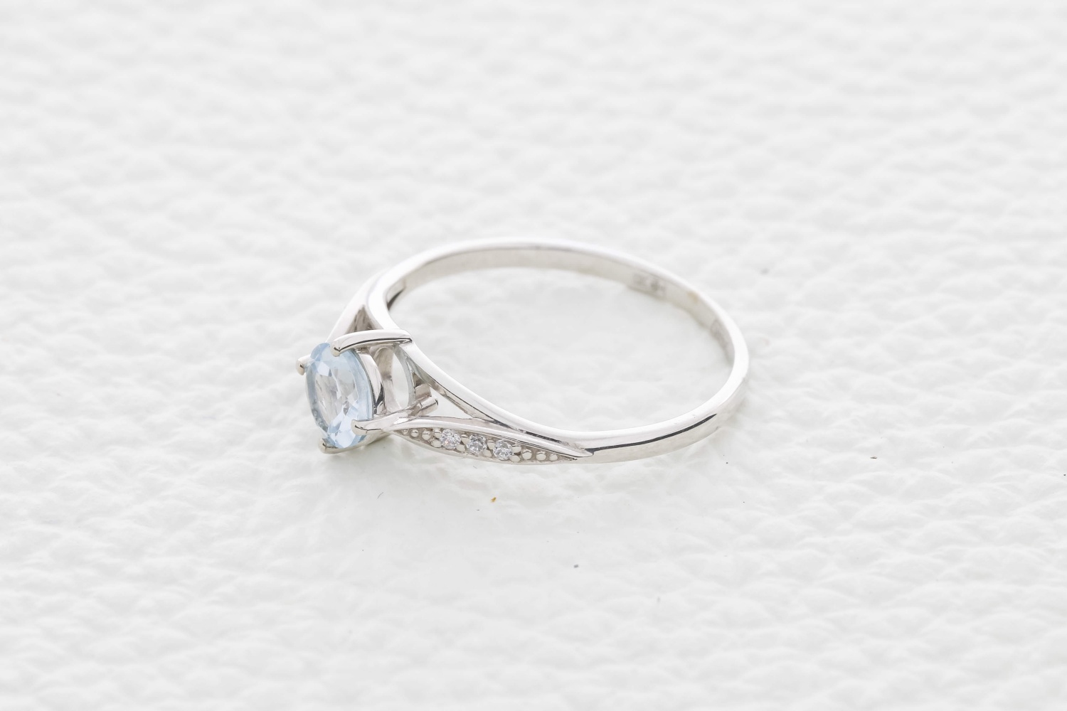 Мастера компании NEWGOLD, приложив всё свое мастерство и искусство, создали для Вас на нашем собственном производстве Кольцо из белого золота с топазом sky и 6 фианитами.