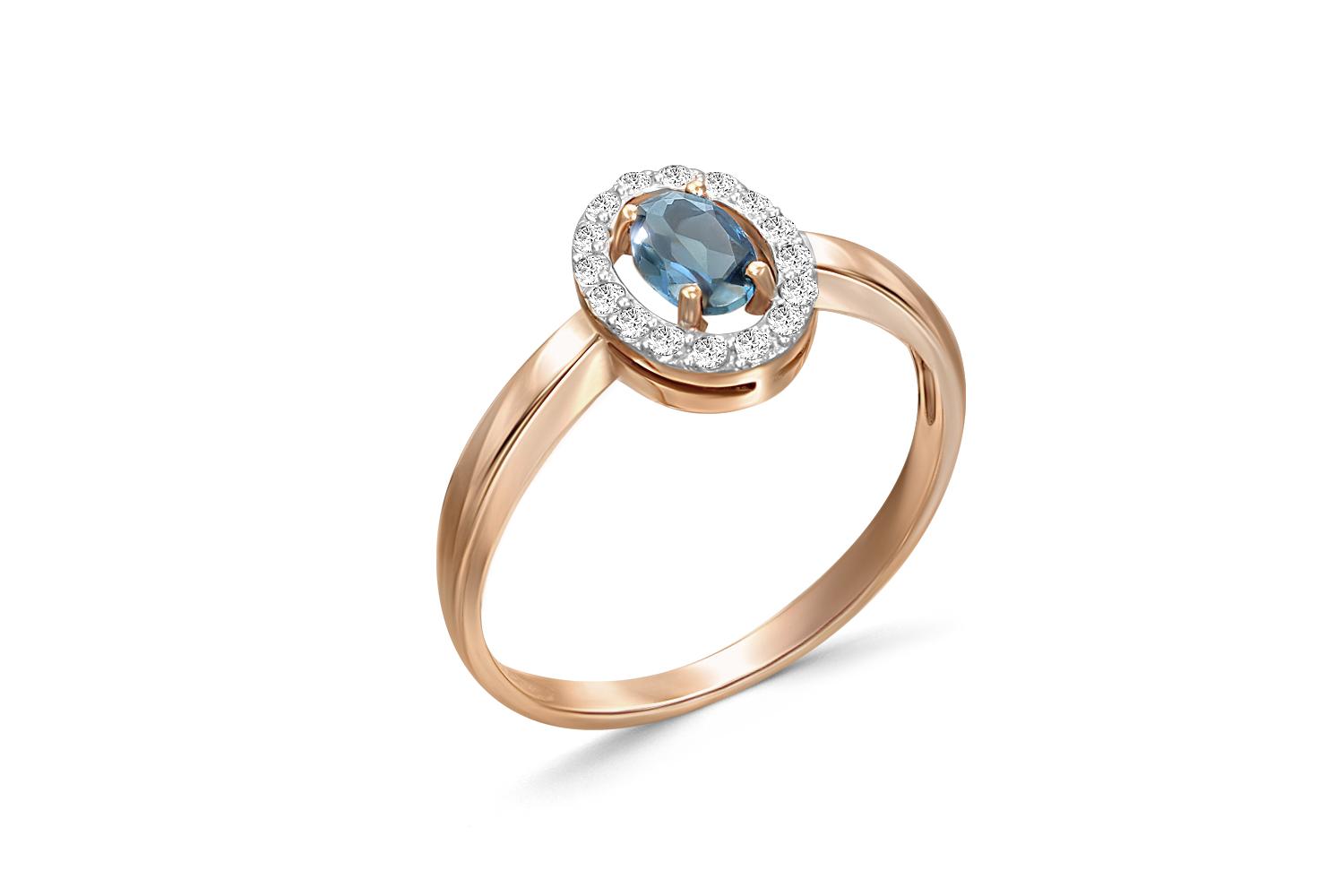 Мастера компании NEWGOLD, приложив всё свое мастерство и искусство, создали для Вас на нашем собственном производстве Кольцо из красного золота с топазом лондон и 16 фианитами.