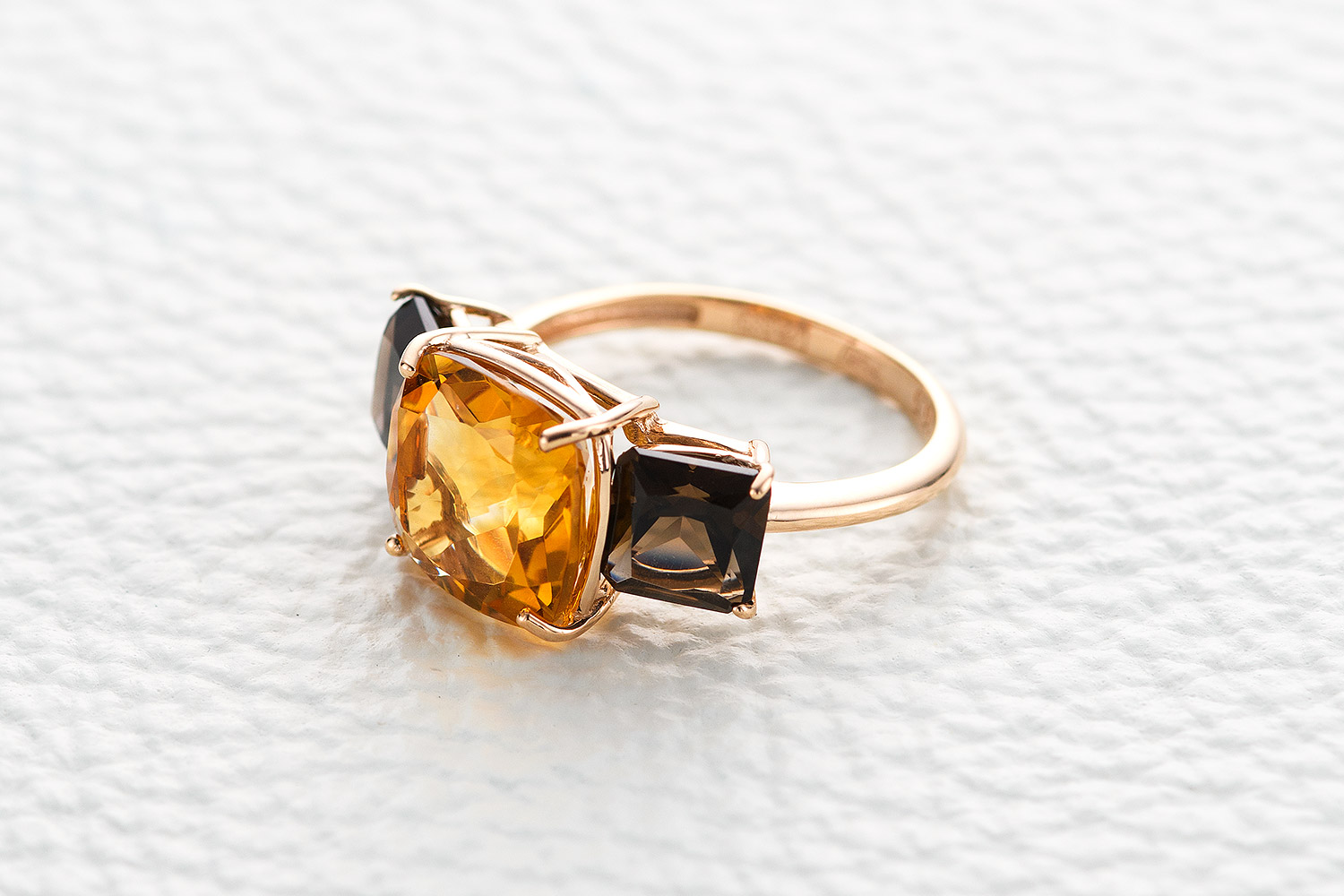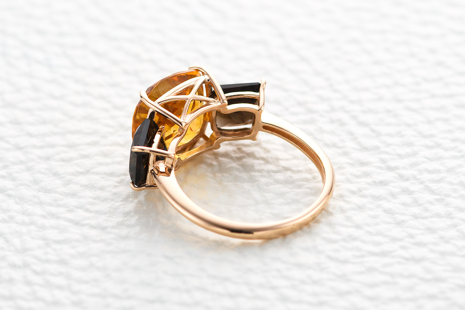 Мастера компании NEWGOLD, приложив всё свое мастерство и искусство, создали для Вас на нашем собственном производстве Кольцо из красного золота с цитрином и 2 раухтопазами.