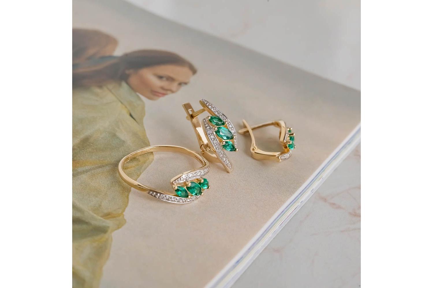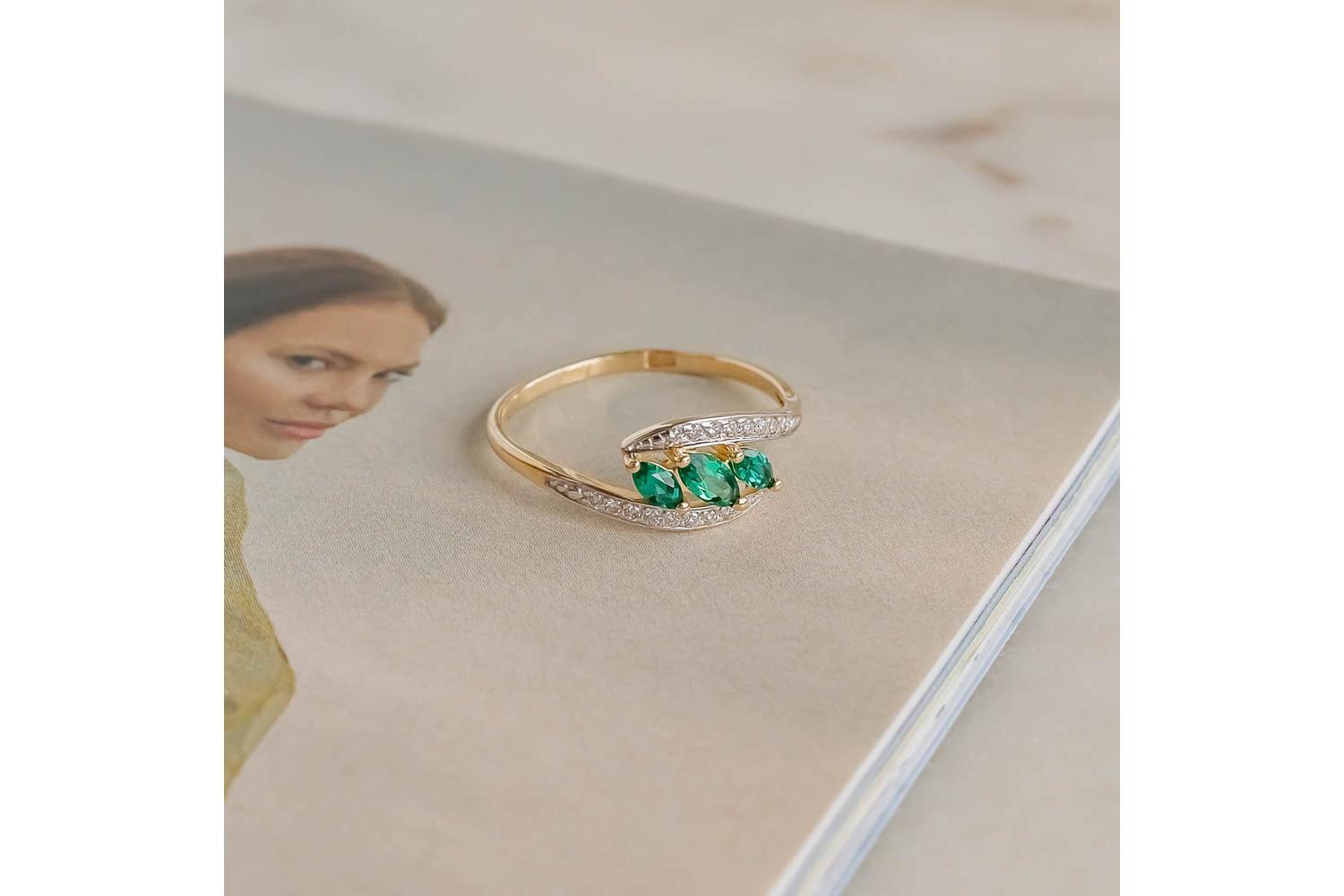 Мастера компании NEWGOLD, приложив всё свое мастерство и искусство, создали для Вас на нашем собственном производстве Кольцо из жёлтого золота с 3 изумрудами и 16 бриллиантами.