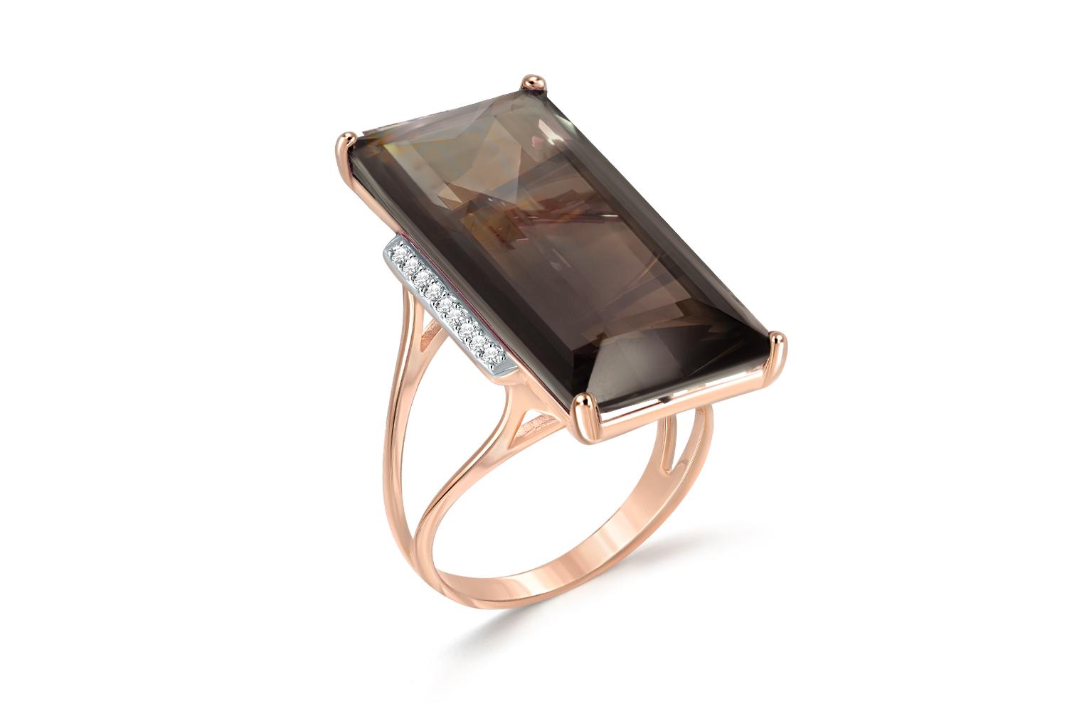 Мастера компании NEWGOLD, приложив всё свое мастерство и искусство, создали для Вас на нашем собственном производстве Кольцо из красного золота с раухтопазом и 18 фианитами.