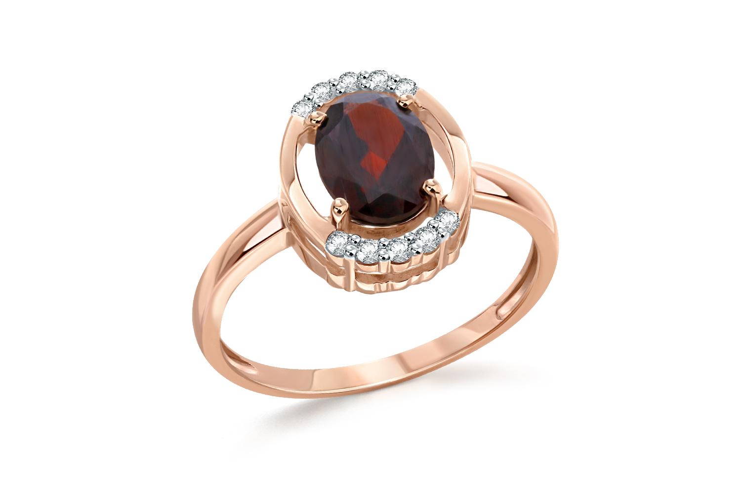 Мастера компании NEWGOLD, приложив всё свое мастерство и искусство, создали для Вас на нашем собственном производстве Кольцо из красного золота с гранатом и 10 фианитами.