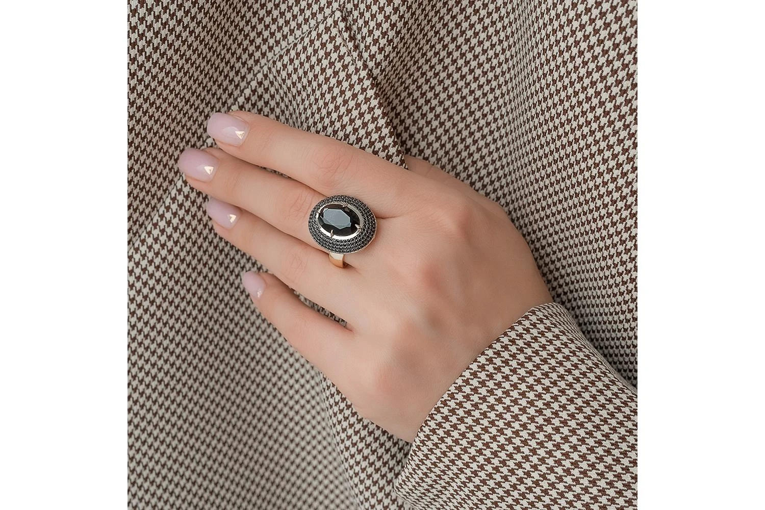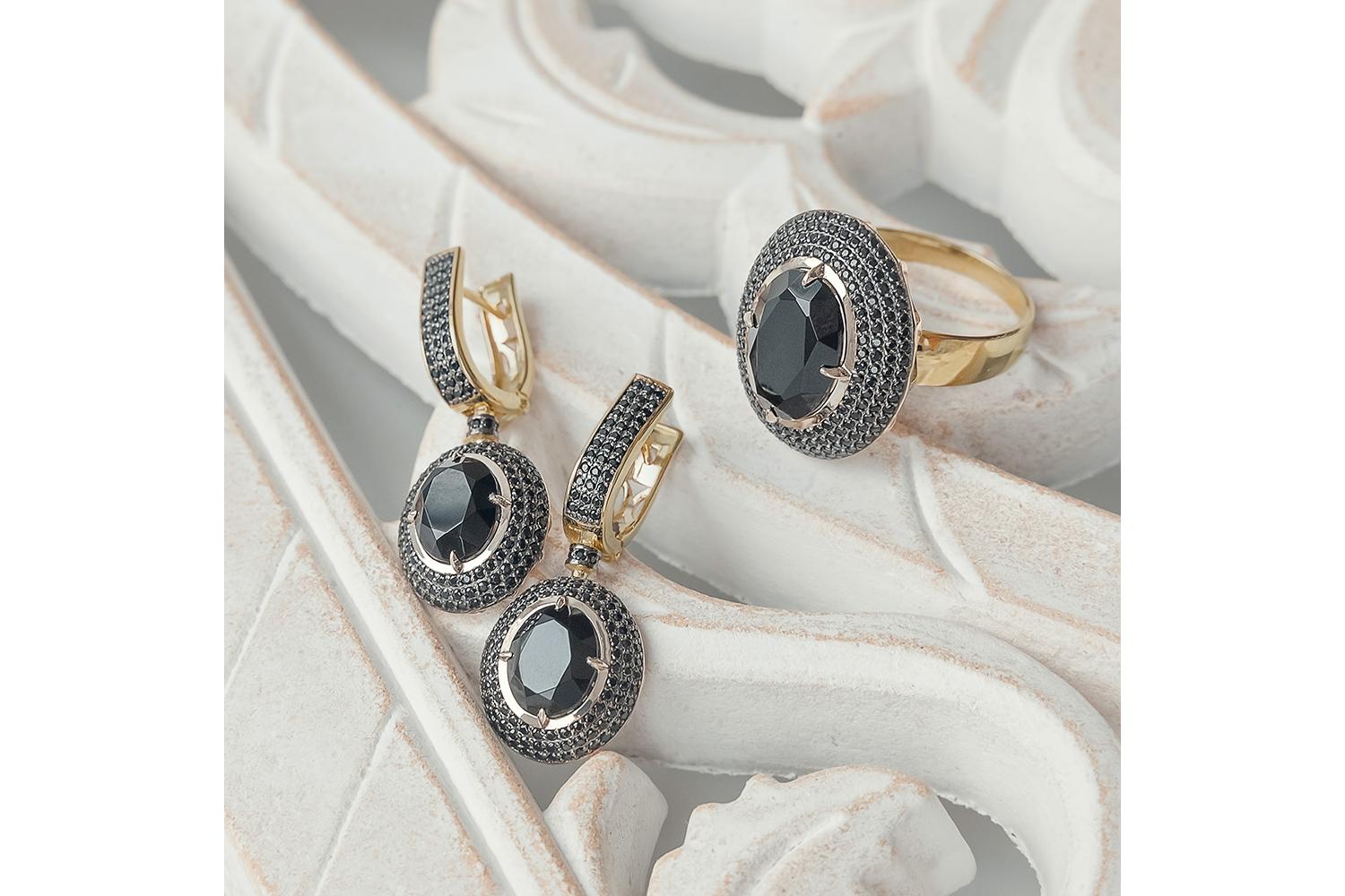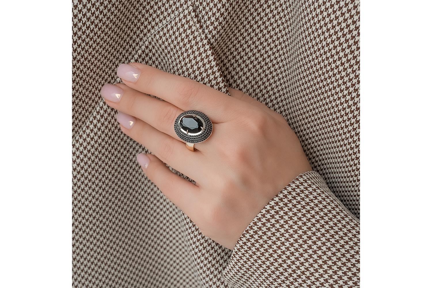 Шпинель, количество 1 шт., огранка овал, размер 14ˣ10 ; Фианит чёрный, количество 184 шт., огранка круг, размер 1 мм