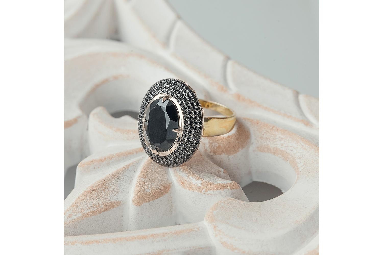 Мастера компании NEWGOLD, приложив всё свое мастерство и искусство, создали для Вас на нашем собственном производстве Кольцо из жёлтого золота с шпинелью и 184 фианитами.